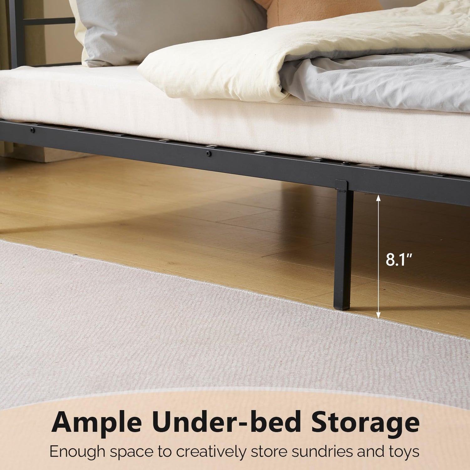 • 【PRACTICAL DESIGN】With 8" of space beneath the bed, you have plenty of room to get creative with storage. Whether it's storing toys, books, or extra bedding. The removable charging socket is a standout feature. With 1 Type - C port, 1 USB port, and 2 AC outlets, it can accommodate all your electronic gadgets, from smartphones to tablets and laptops.