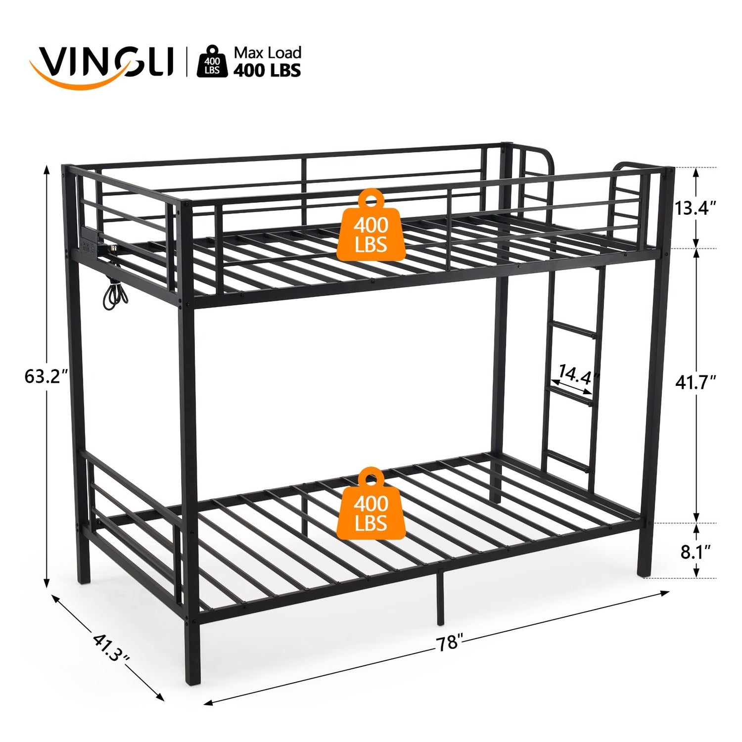 • 【DIMENSIONS & EASY INSTALLATION】:Twin size 78.0" L X 41.3" W X 63.2" H. Slat installation with a snap-on design for convenience. Along with the twin bunk bed, you will receive detailed instructions and all the necessary installation tools, ensuring that you can set up your bed with ease.