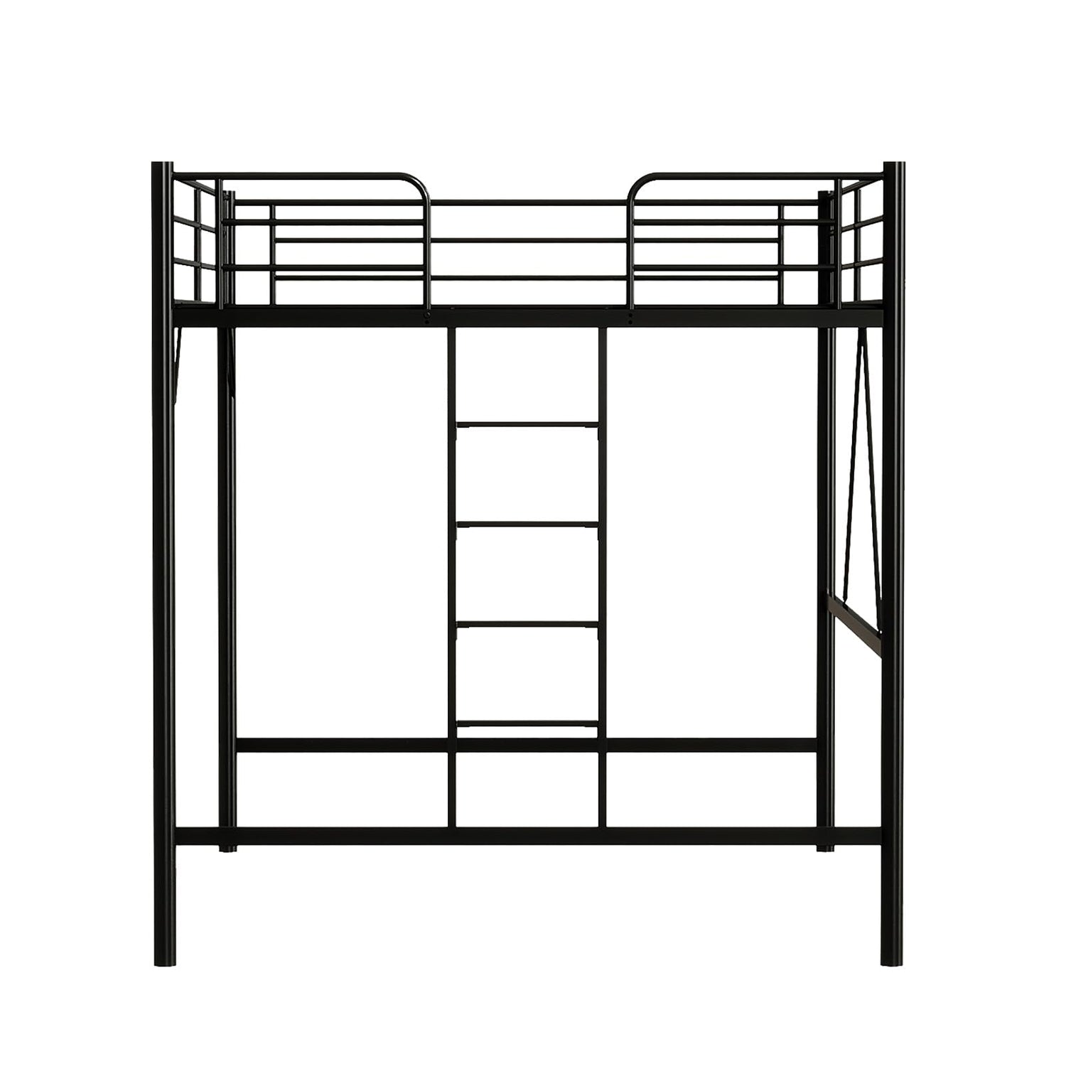 VINGLI Queen Loft Bed with Flat Rungs for Adults, Kids and Young Teens, No Box Spring Required,Heavy Duty Metal Slat Support, Black