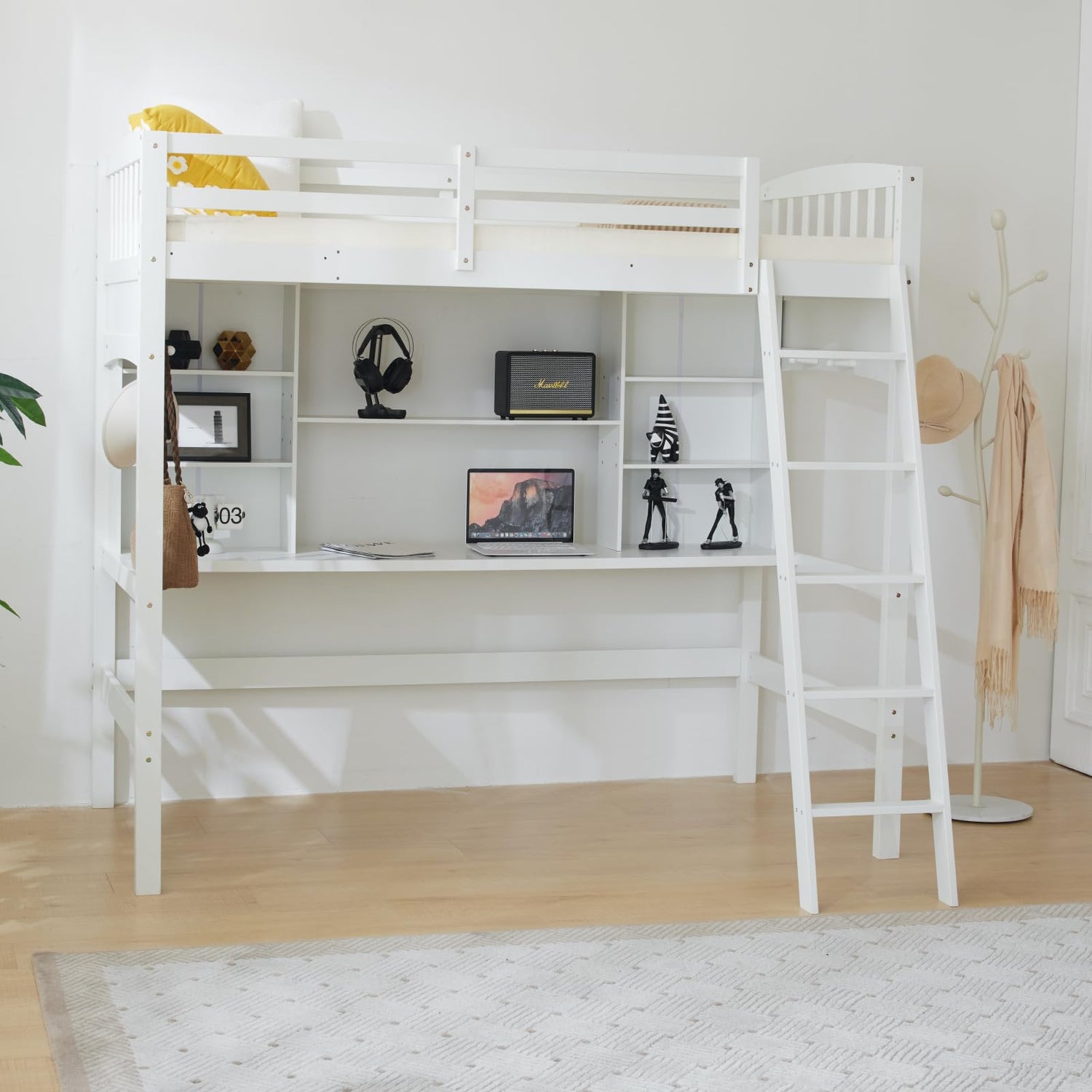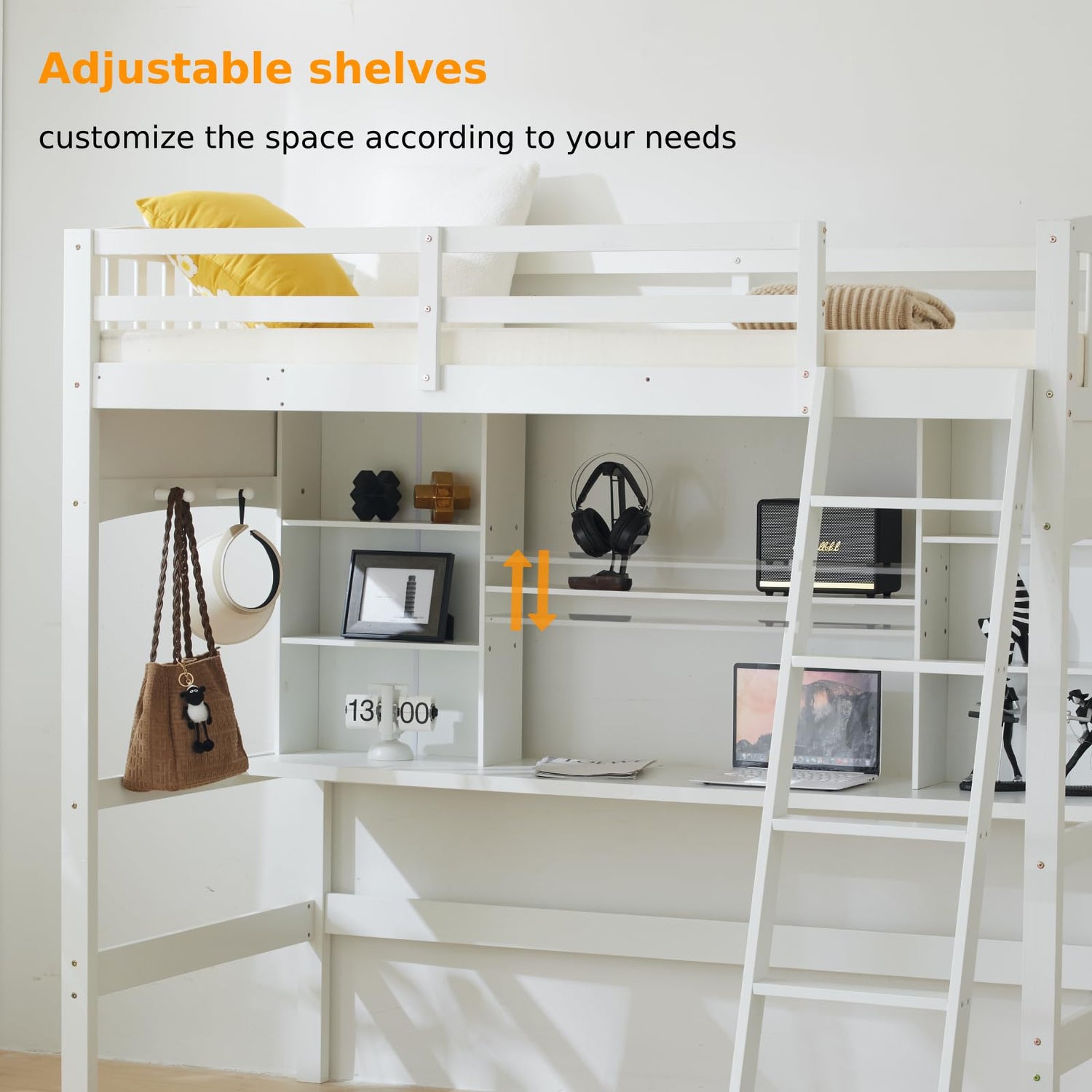 VINGLI Space-Saving Twin Loft Bed with Desk & Bookshelf for Kids and Teens