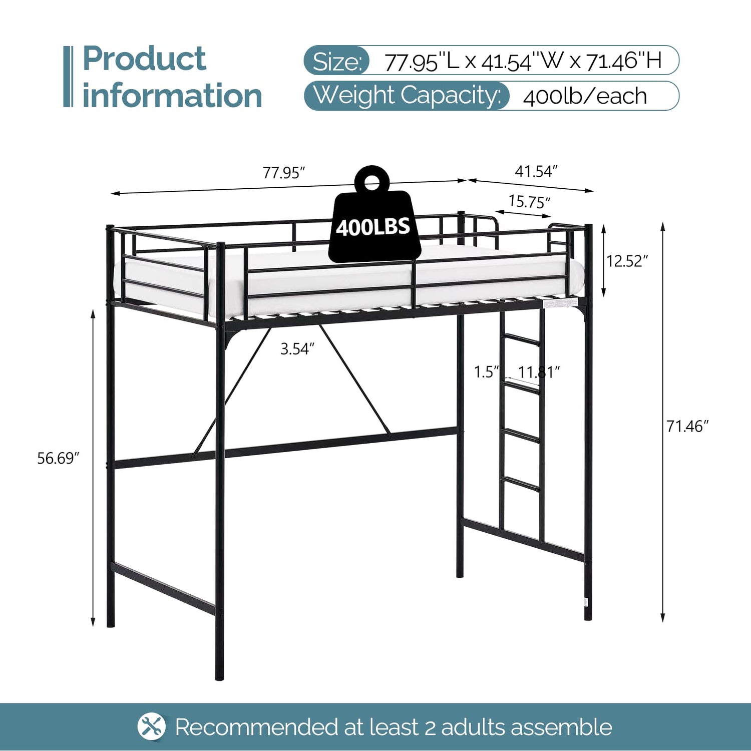 Discover the VINGLI Twin Loft Bed with Stairs, a perfect blend of robust design and space-saving functionality. Crafted from 100% solid metal with a sleek black finish, this loft bed not only provides a stylish touch to any room but also ensures exceptional strength and stability, boasting a load capacity of up to 330 lbs.