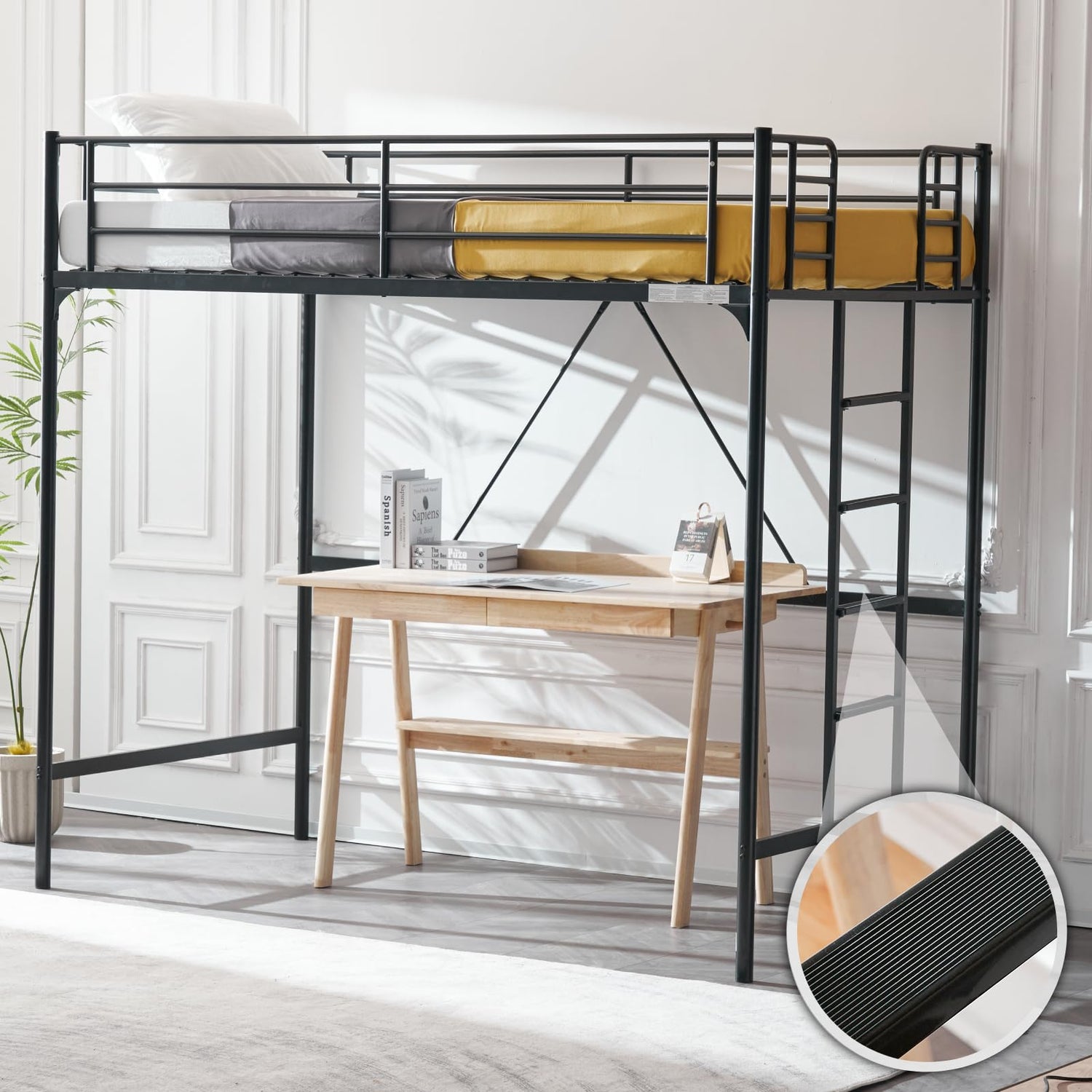 Safety is paramount with this design. It features full-length guardrails to prevent accidental falls, with a recommended mattress thickness of 7-8 inches to ensure comfort while maintaining safety standards. The guardrail is positioned at a height of 13.85 inches, providing additional peace of mind.