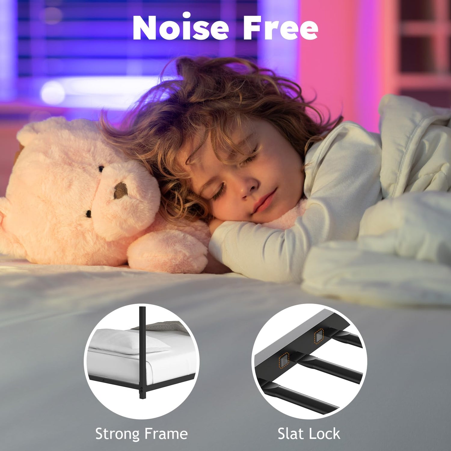 Zevemomo Twin Over Twin Bunk Bed, Metal Low Profile Bunkbeds with Full-Length Guardrail and Ladder, Space Saving, No Boxing Spring Needed, Black