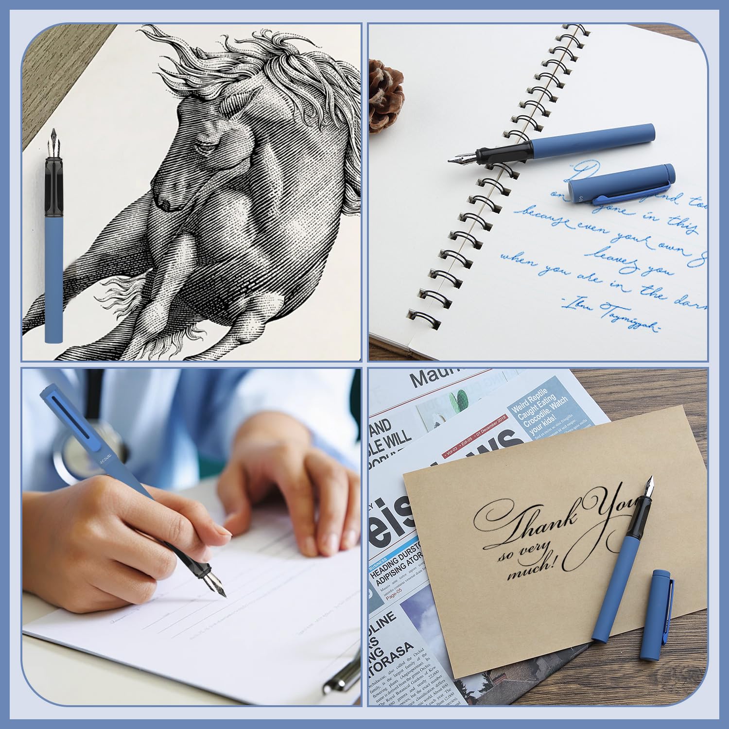 - 【8 Colorful Calligraphy Fountain Pens】 The 8 fountain pens were includes the piston converters. You can extract your preferred ink with the piston converters. The 8 color shades of fountain pens barrels are created for varied occasions and moods. The taupe grey and deep blue fountain pen can be used in formal office workings. The lake green and icy blue fountain pen can be used in daily personal use or calligraphy practice. The playful yellow and mint green pen offers enjoyable coloring and fun artistic creation. Differed colors for your varied mood