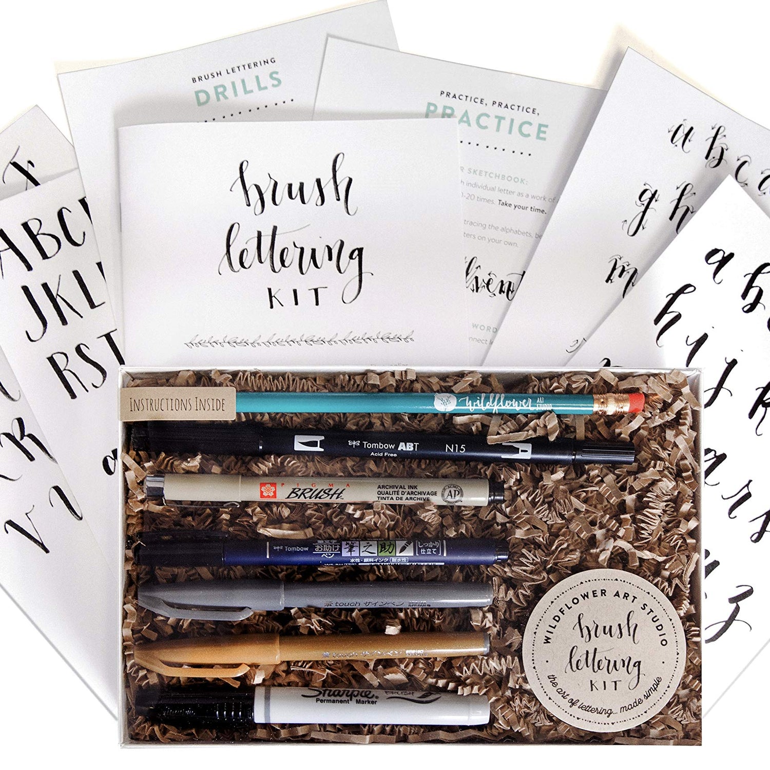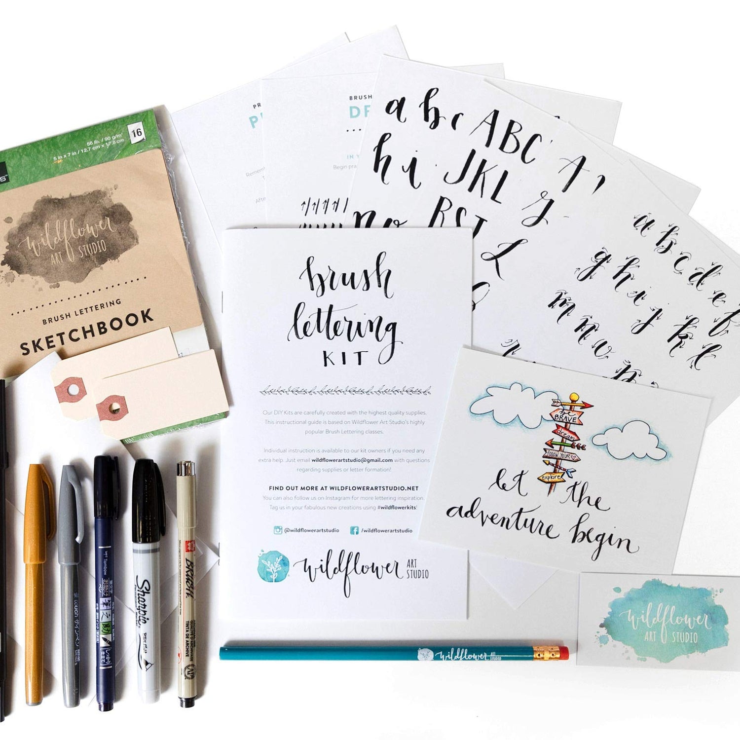 Wildflower Art Studio Brush Lettering Calligraphy Kit • Award-Winning Starter Set for Beginners • Includes Instruction Book, Tracing Pad & Supplies • Gift Set - Kids, Teens, Adults