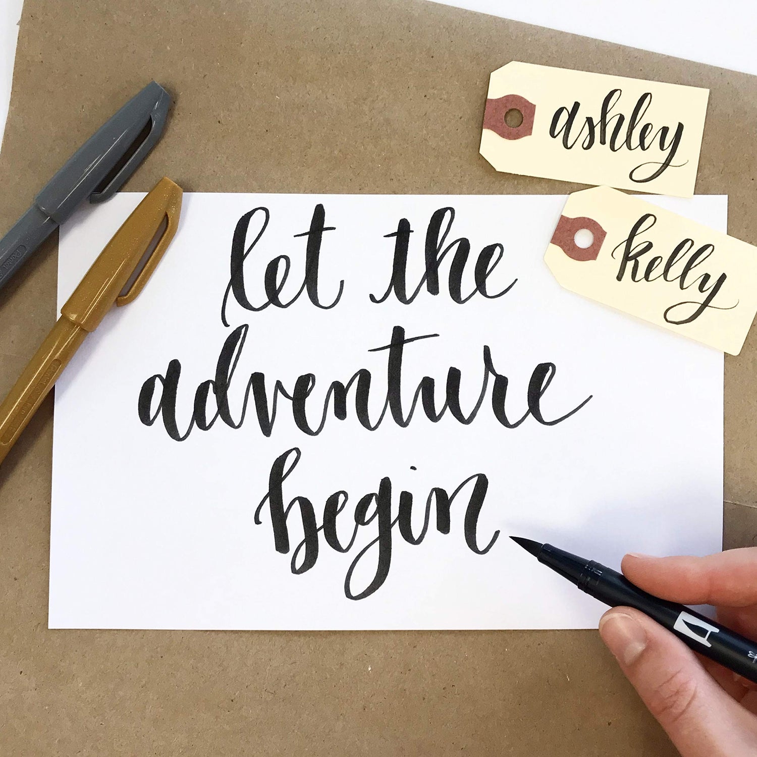 Details: The art of Brush Lettering... made Simple. Based on Wildflower Art Studio's highly popular Brush Lettering classes, this curated kit includes everything you need to get started learning the art of Brush Lettering. Kit includes: - Step-by-Step Instructions - Brush Lettering Guide with Illustrations - 2 Fine-tip Brush Pens (black ink) - 2 Wide-tip Brush Pens (black ink) - 1 Gold + 1 Silver brush lettering pen - 4 Practice Alphabets - 1 Blank Greeting Card and Envelope - 3 Blank Tags - 1 Sheet of Blank Cardstock - Sketchbook with 16 pages of tracing paper - Project Idea Guide Packaged in a sturdy white box with clear lid (as seen in photo). Hand Lettering Kit Dimensions: 8.5" x 5.5" x 1.5" Please contact us for Wholesale orders. Wildflower Art Studio is based in Denton, Texas. Email support is available.