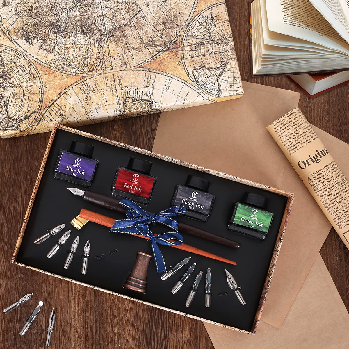 - Retro Wooden Pen Calligraphy Set - YICMY calligraphy pen set allows you to regain the joy of writing. The antique calligraphy set with complete accessories is suitable for beginners to practice, and is also very suitable for making handbook records to meet your different writing needs.Use this calligraphy suit at the sign-in ceremony of special events to make guests feel honorable and interesting.