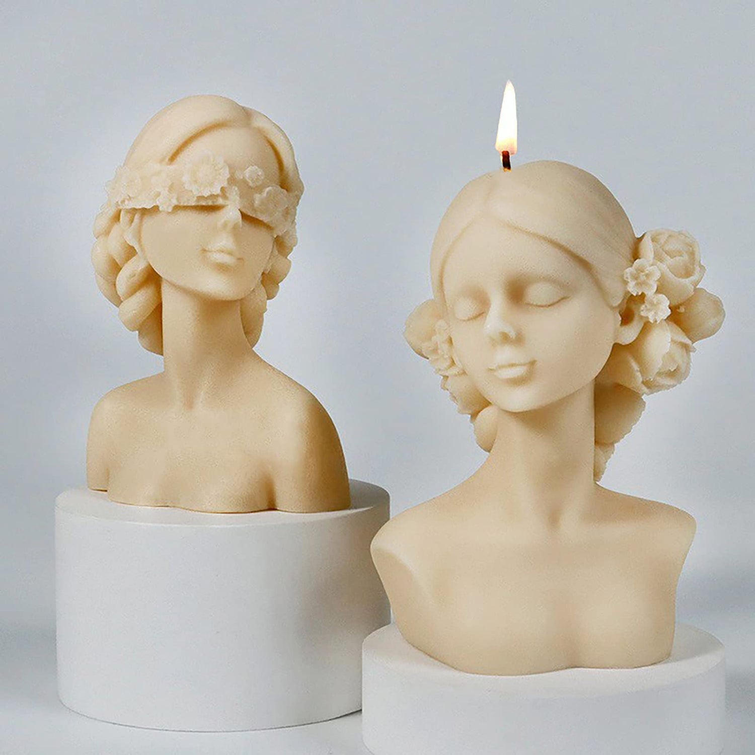 2 Pack Braid Girl Shape Portrait Candle Resin Mold - Resin Casting Silicone Molds for Home Decor & Candle Making Wave Spiral Mold