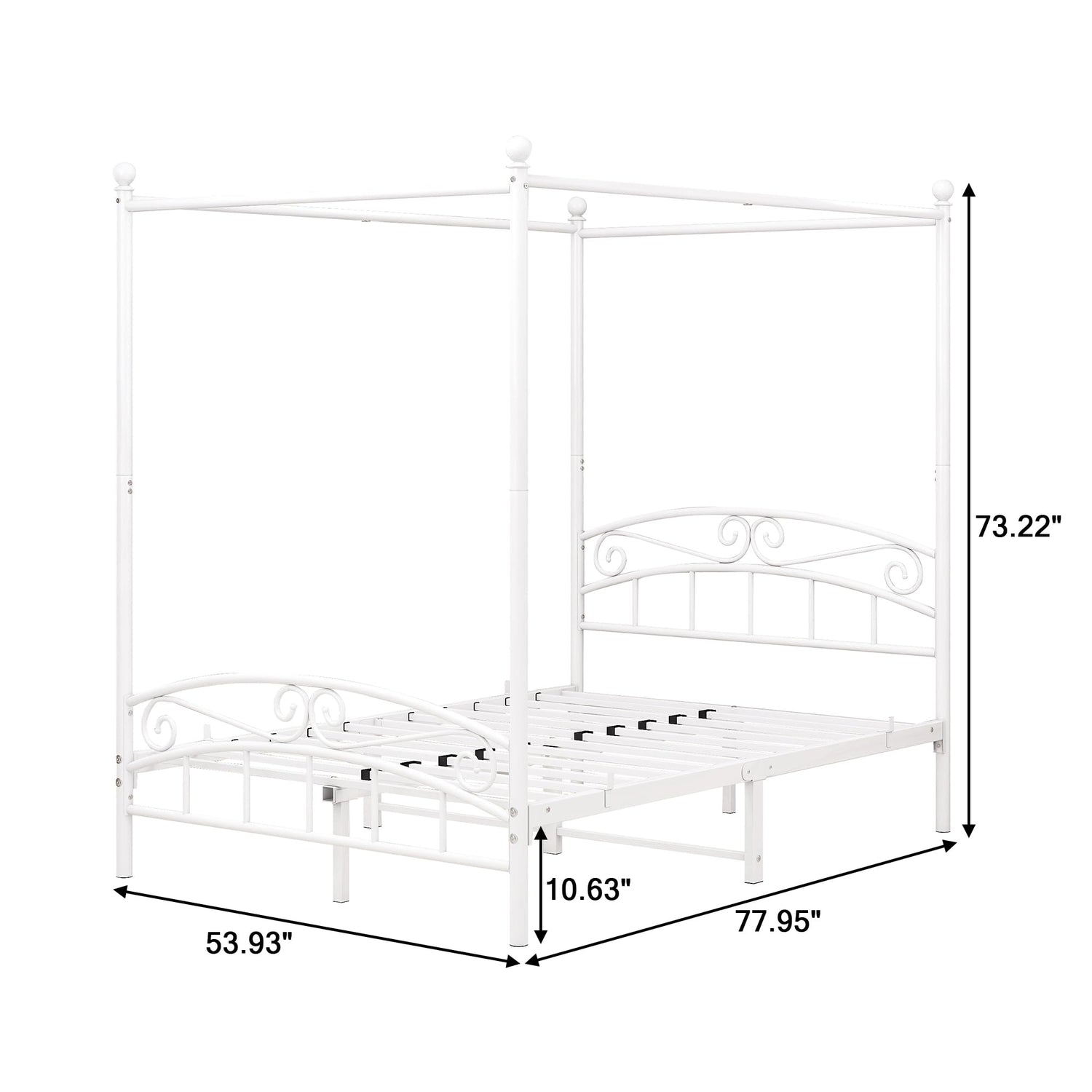- White Canopy Bed Frame Full: Featuring the full bed frame to hang bed curtains. and the metal bed clean lines and elegant appearance contributes to a sense of modern and matches well with interior decoration.
