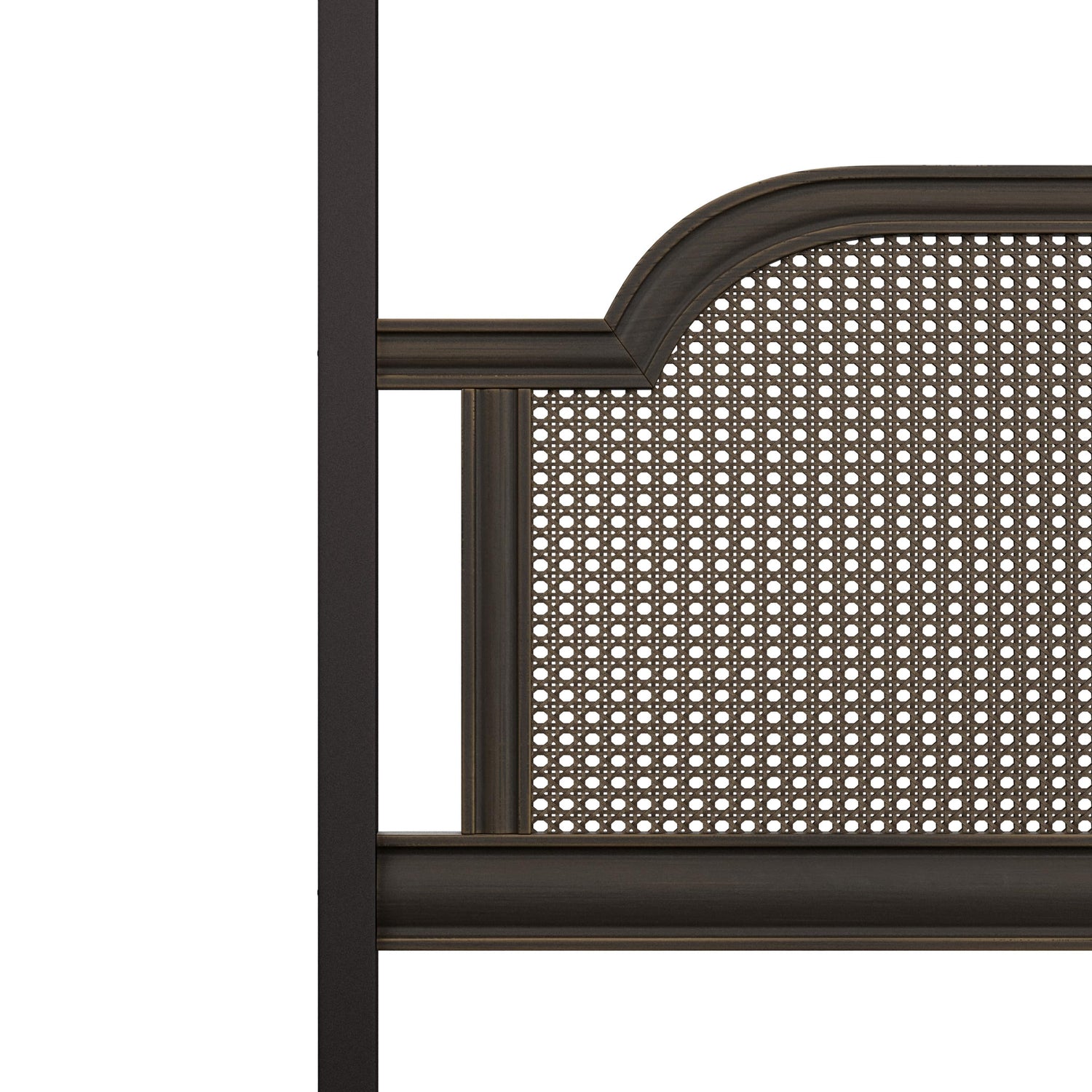 Details: This canopy bed is an exceptional attraction as a centerpiece for the bedroom. A durable, stately metal frame and richly finished cane wood headboard give it a clean yet striking look that can complement your style – be it transitional, farmhouse or coastal. This mixed media queen size four-poster frame and canopy, finished in an oil bronze, will transform your bedroom into a lavish sanctuary. Bed is built to accommodate a box spring and mattress; not included. Assembly required.
