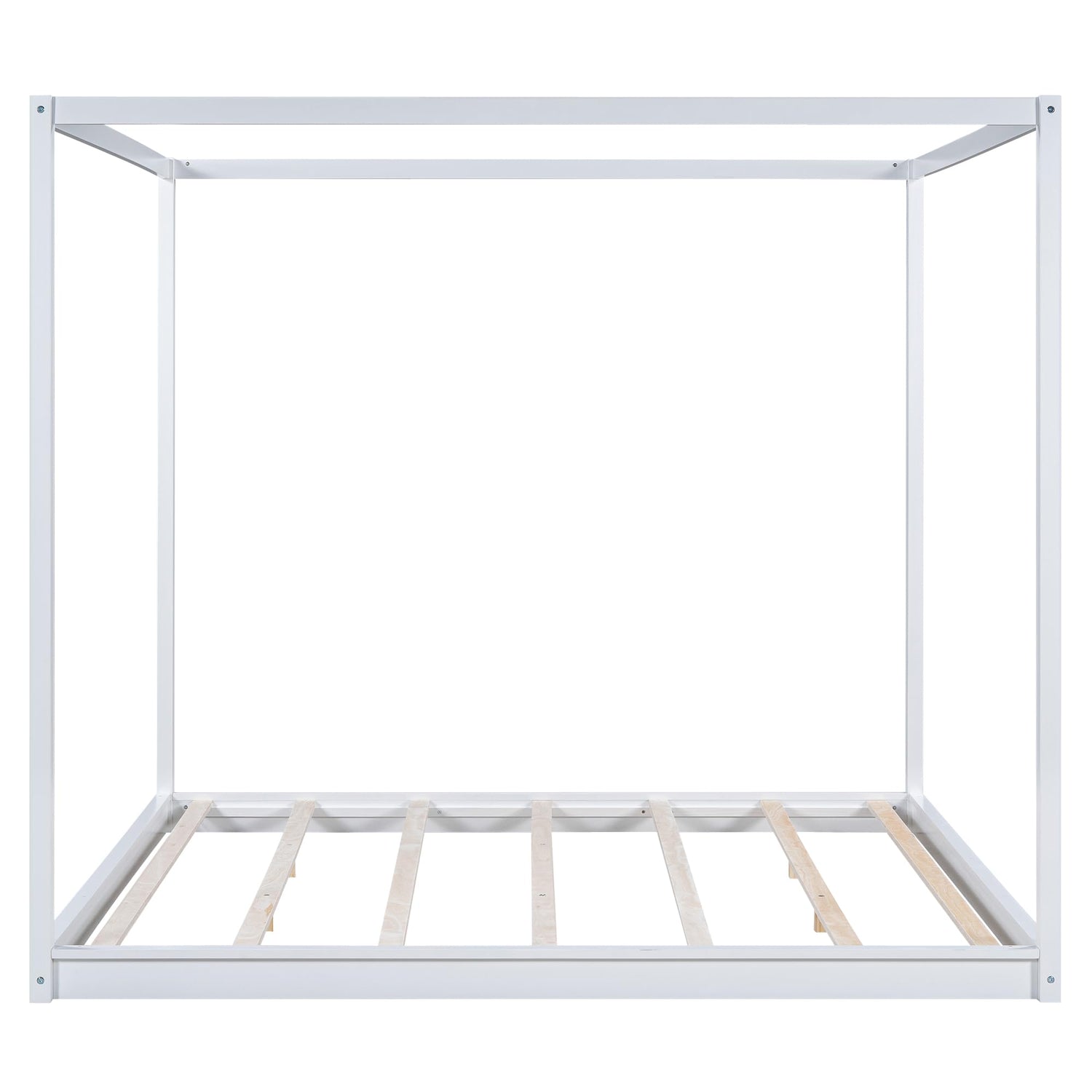 LUMISOL King Size Canopy Floor Bed Frame, Morden Four Posters Bed Frame with Wooden Slats Support, Solid Wood Floor Bed Frame, No Box Spring Needed, White