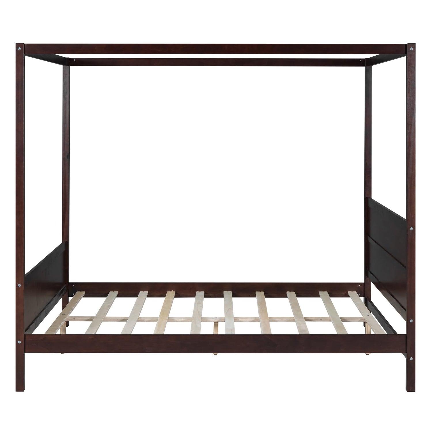 Merax Queen Size Canopy Bed with 4 Wood Legs, Queen Bed Frame Platform Frame with Headboard and Footboard, Under Bed Storage, Slat Support Leg, No Box Spring Needed, Espresso