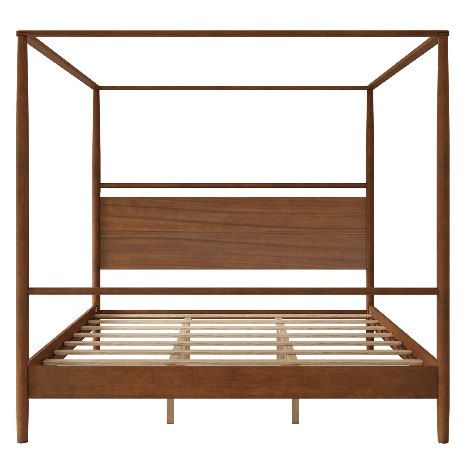 Merax Wood Canopy Bed Frame King Size, Four Posters Bed/Squeak Resistant/No Box Spring Needed, Walnut