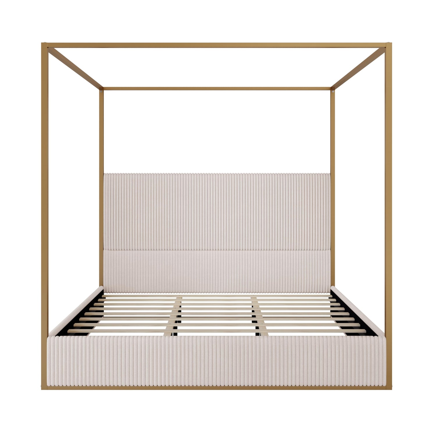 Modern 4-Poster Canopy Platform Bed King Size with Tall Upholstered Headboard, Metal Canopied Design Platform Bed Frame with Strong Slats Support, No Box Spring Needed (Beige, King)