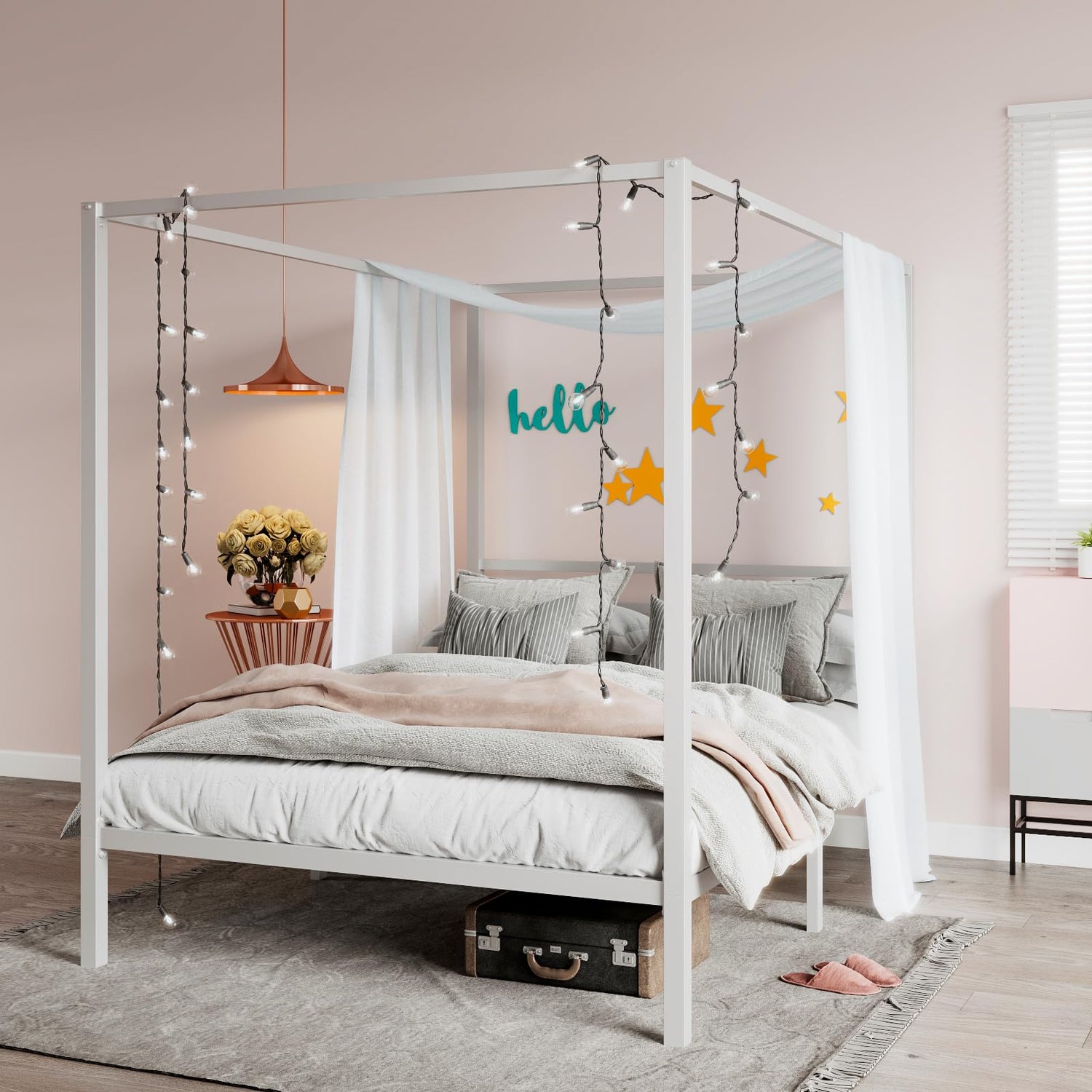 • Solid Construction: Sturdy metal bed frame with four-poster canopy top. Reinforced metal slats prevent mattress sagging and help to increase mattress life. It can hold weight up to 800 lbs.