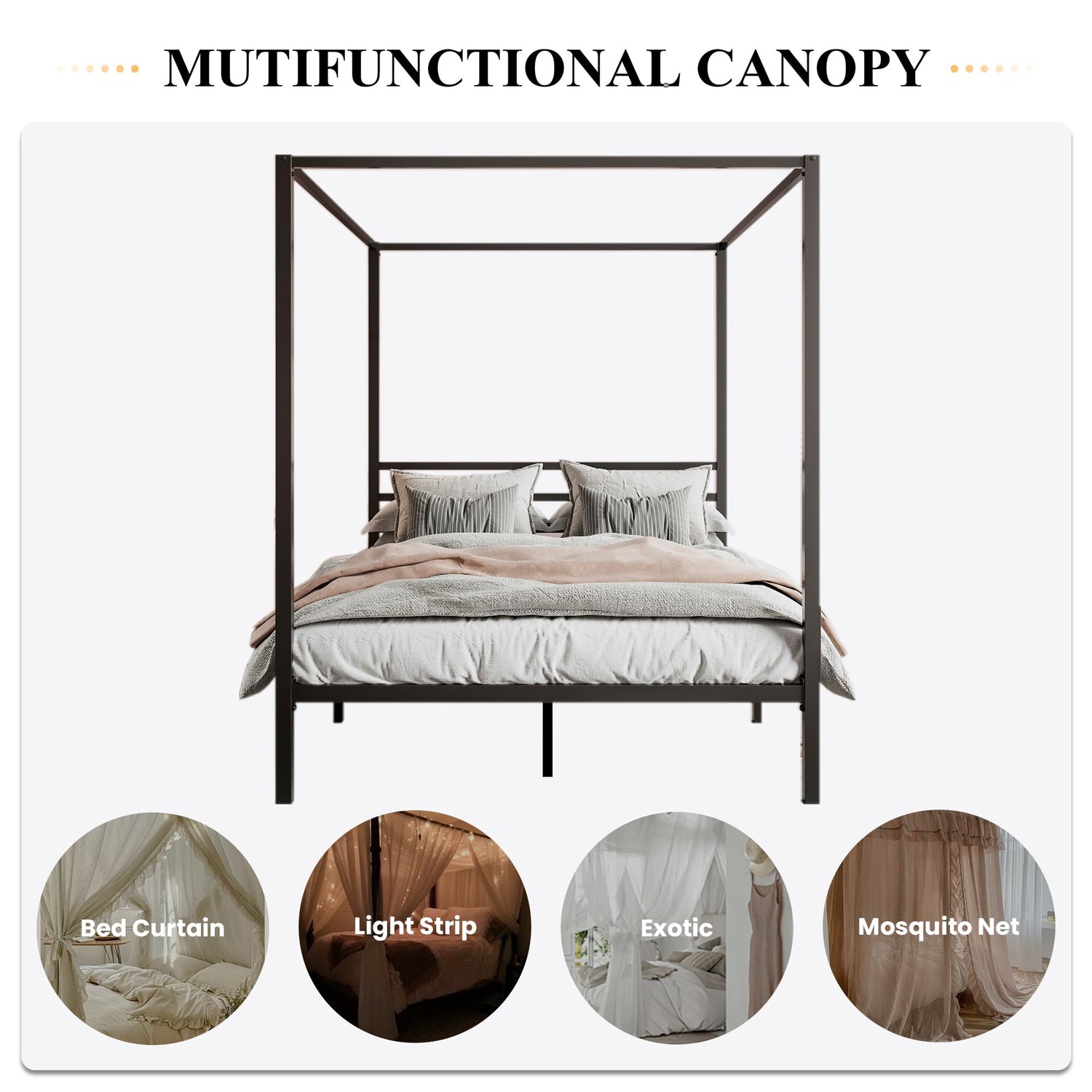 - Solid Construction: Sturdy metal bed frame with four-poster canopy top. Reinforced metal slats prevent mattress sagging and help to increase mattress life. It can hold weight up to 800 lbs.