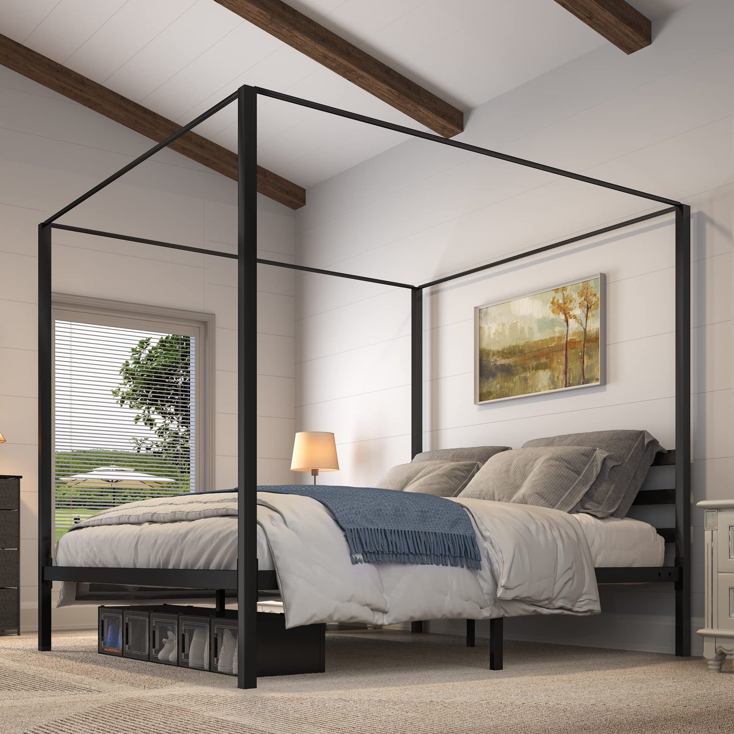 YITAHOME Metal Four Poster Canopy Bed Frame 14 Inch Platform with Built-in Headboard Strong Metal Slat Mattress Support, No Box Spring Needed, Black, King Size