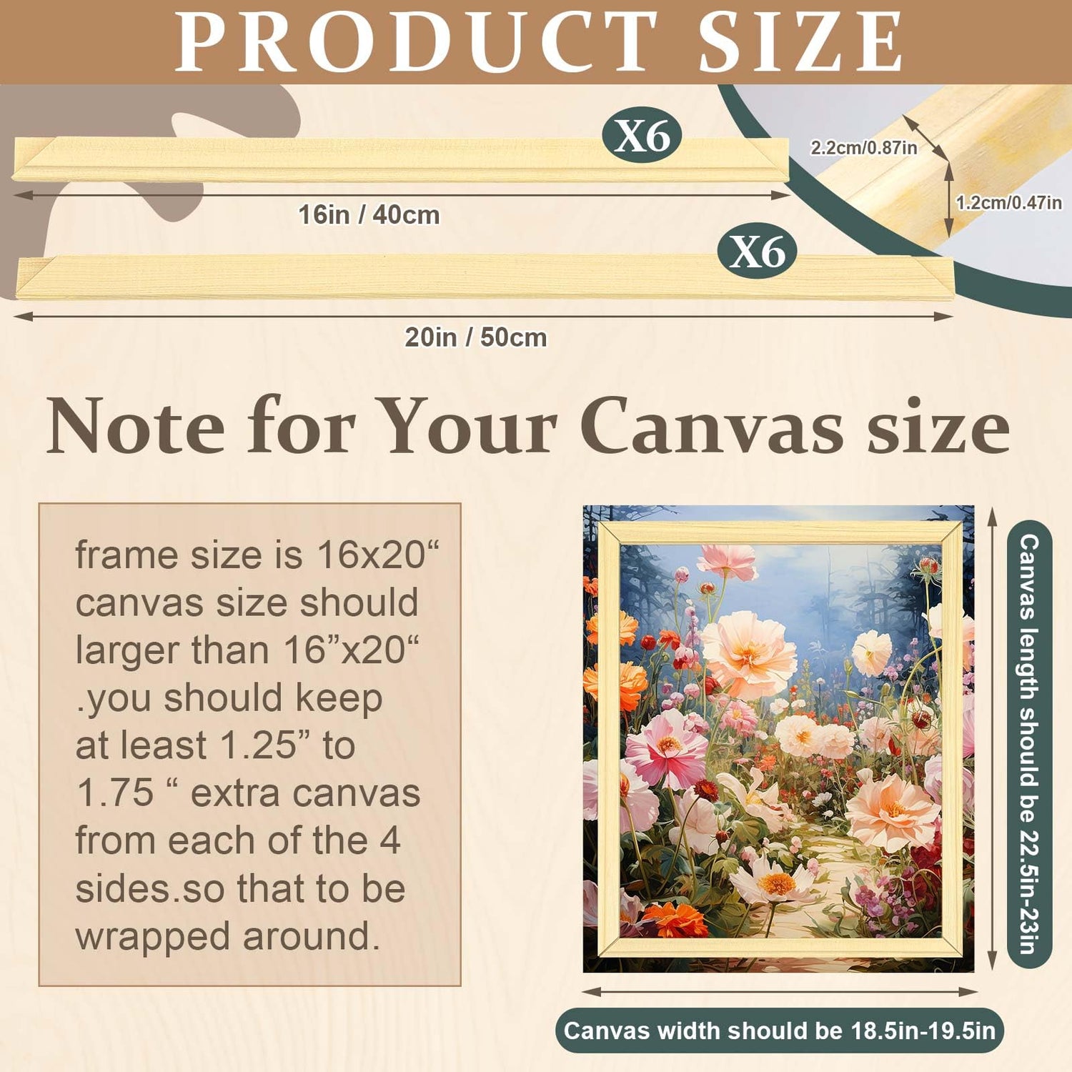 - Versatile Sizing for Various Artworks: the 16 x 20 inch size of this canvas frames kit is nice for a wide range of artistic projects; Whether it's acrylic paintings, diamond paintings, or oil artworks; For the better results, ensure your canvas has an extra 1.25-1.75 inches on each side for wrapping around the frame