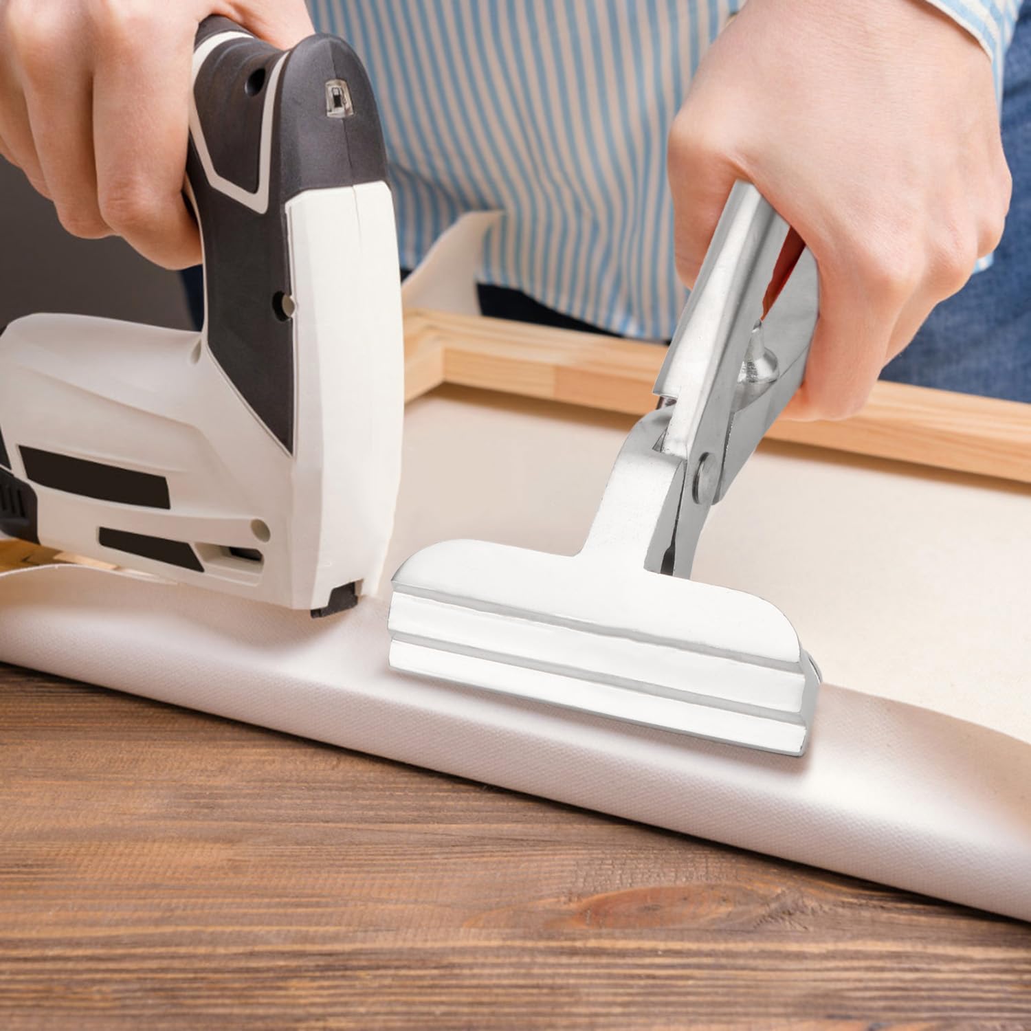 • Using canvas pliers not only saves your fingers, but also speeds up your work and makes the finished product more stable and tight.