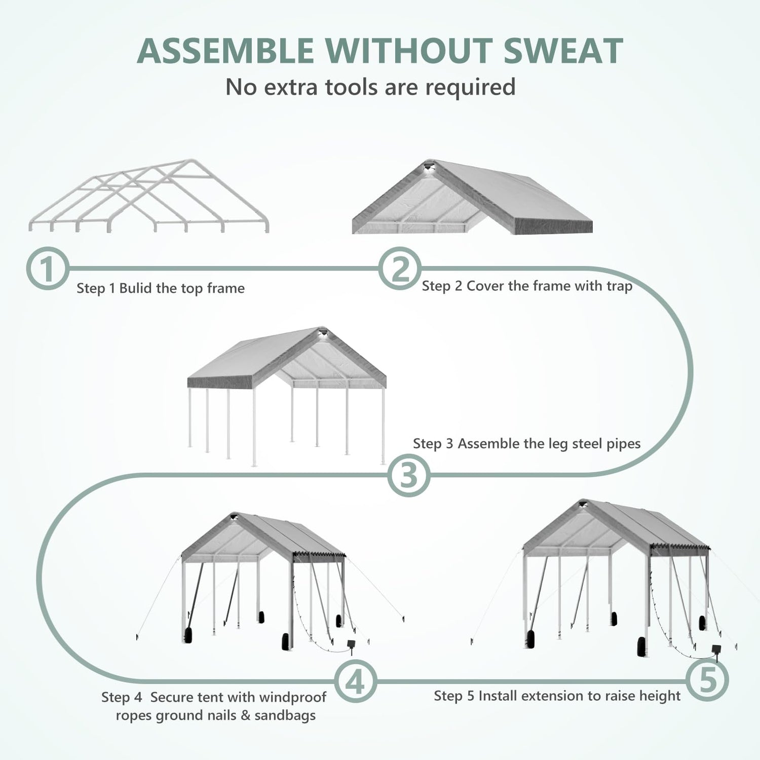 • 【Great Value】: Our carport offers excellent value for money with our high-quality materials, versatile design, and rich freebies. In addition to the carport itself, your purchase includes a free set of solar lights, a light belt, bindings and windproof weighted sandbags, making it a complete package that provides even more value for your money.