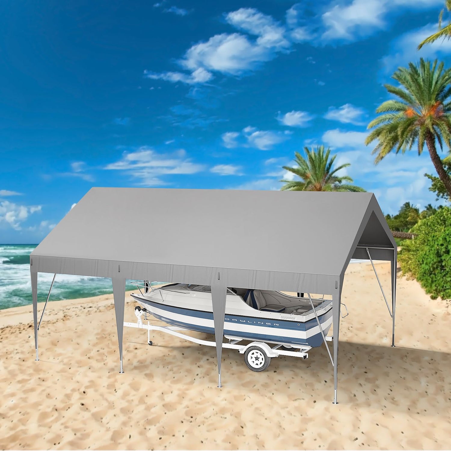 13x20ft Heavy Duty Carport Outdoor Car Canopy UV Resistant Waterproof Party Tent All-Season Portable Garage Gazebo Shelter for Car, Storage Shed (Gray)