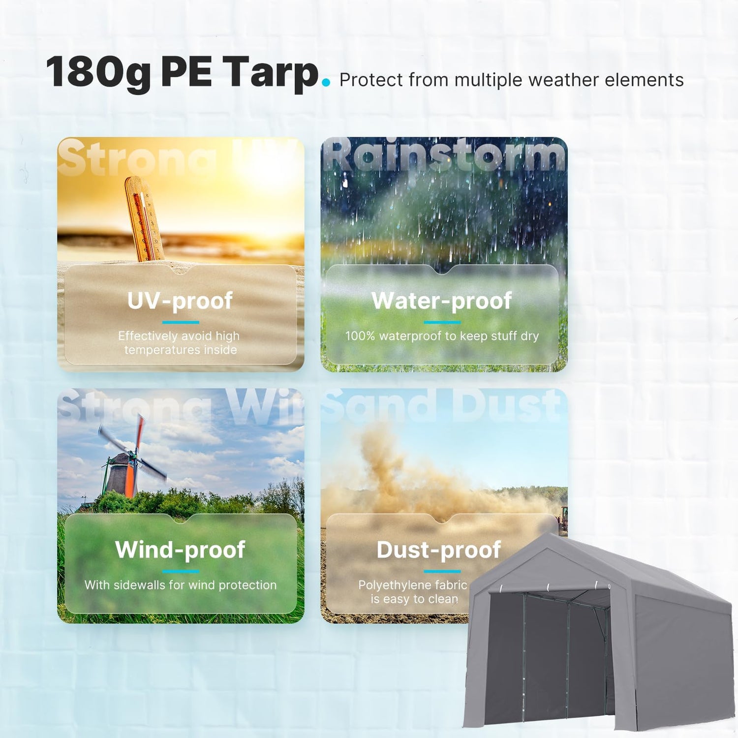 • 【Removable Sidewalls and Doors】- This carport shelter has 2 removable sidewalls and two removable doors with zippers. You can roll the doors up or down when needed. You can also remove all the sidewalls and doors, only leave the canopy cover on for outdoor activities.
