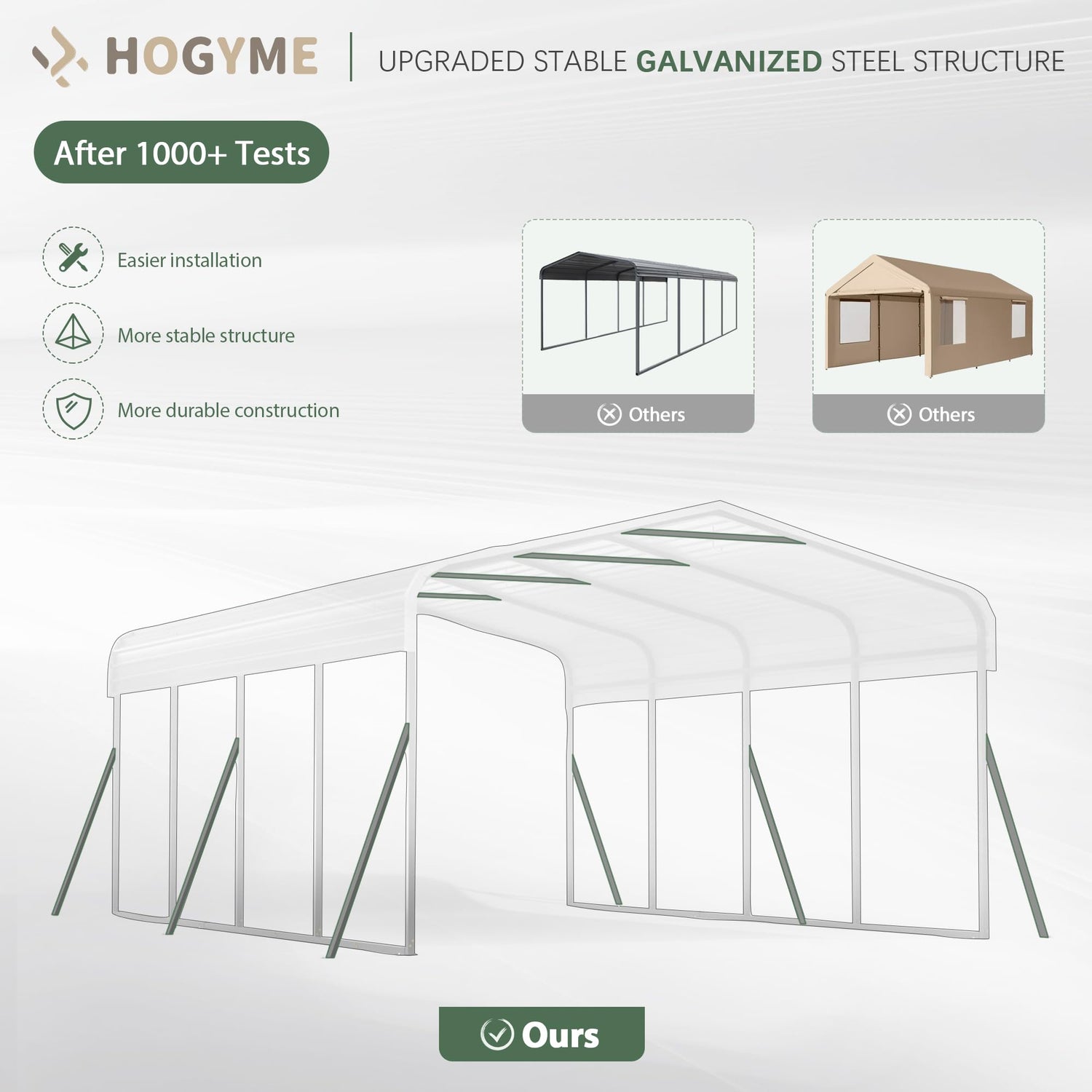 • 【Superior Frame Upgrade】HOGYME metal carport features an upgraded frame structure, rigorously tested over 1000+ times, boasting an average 35% improvement in installation ease and stability compared to other carports on the market.—engineered for your convenience.