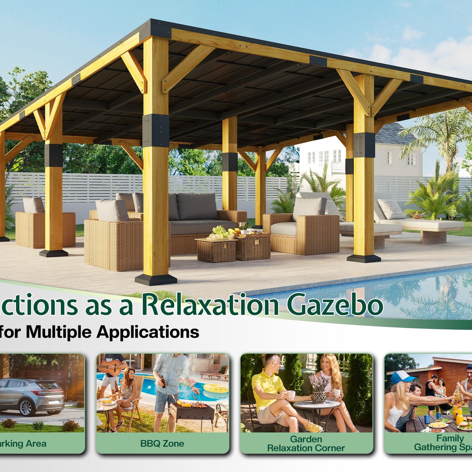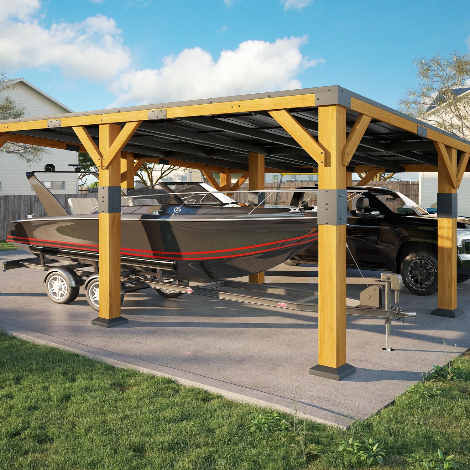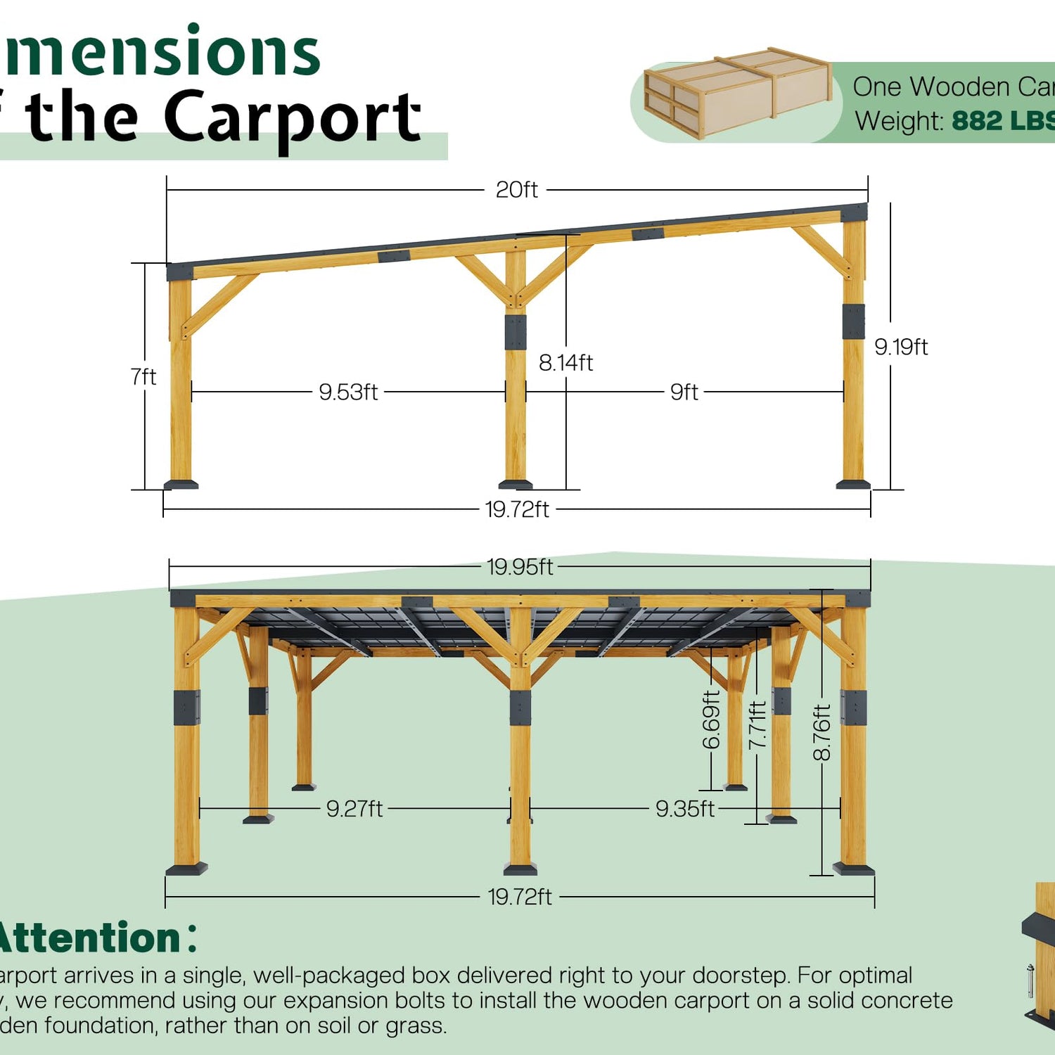 - Built for Extreme Weather Conditions: Constructed with a rust-resistant galvanized steel sloped roof and solid cedar wood frame, this wooden carport withstands winds up to 100 mph and supports 20,800 lbs—delivering year-round protection in all climates