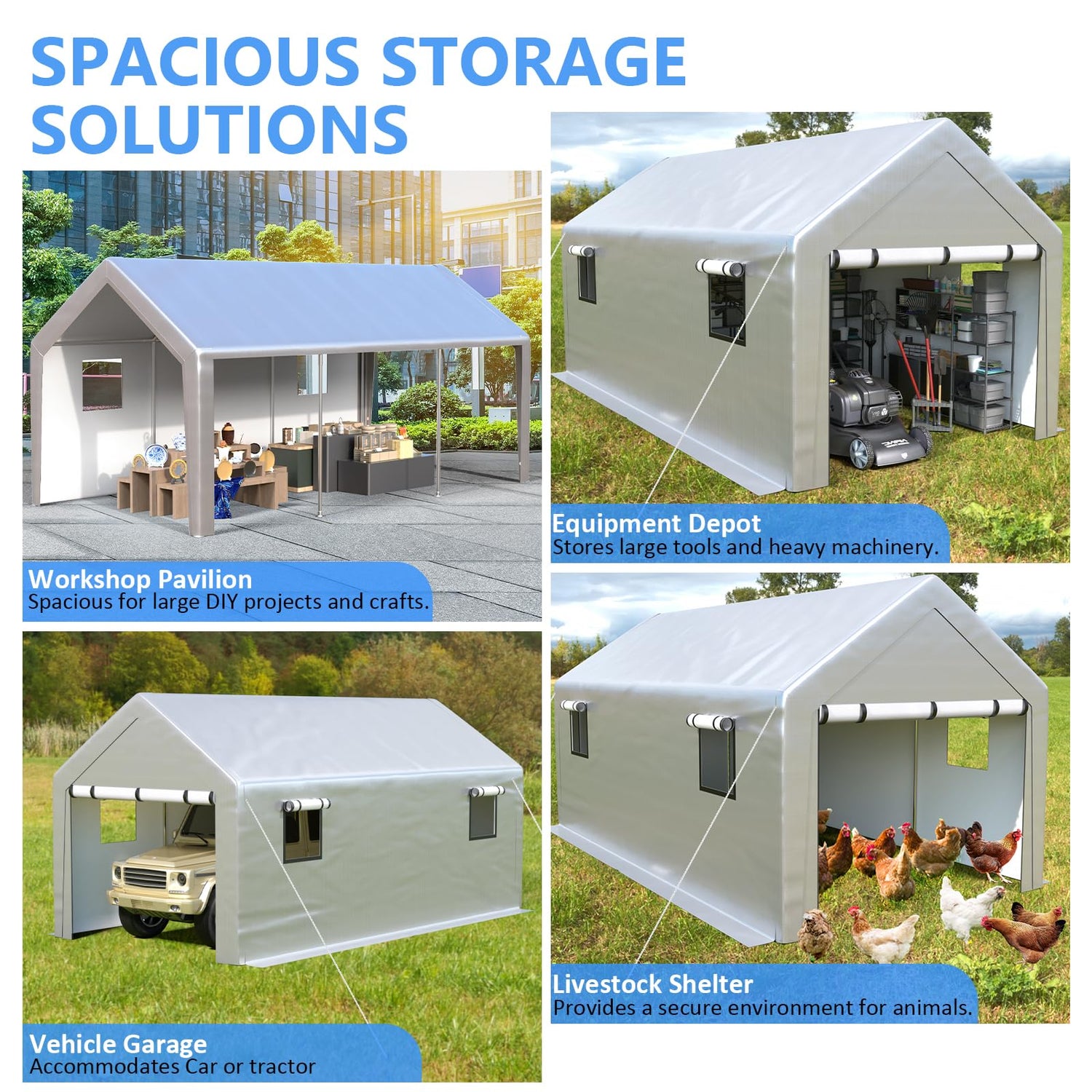 - OPTIMAL VENTILATION FEATURES-Our carport includes dual mesh windows to ensure excellent breathability, differentiating it from modols with single or no windows. This ventilation maintaining a fresh environment for long-term storage