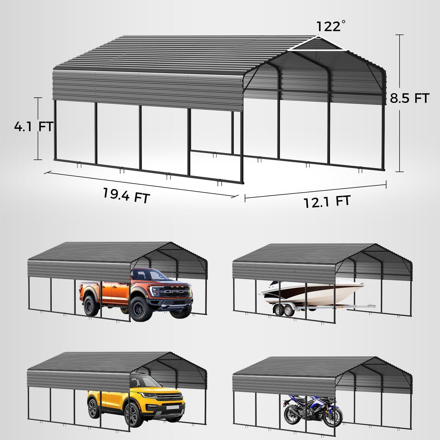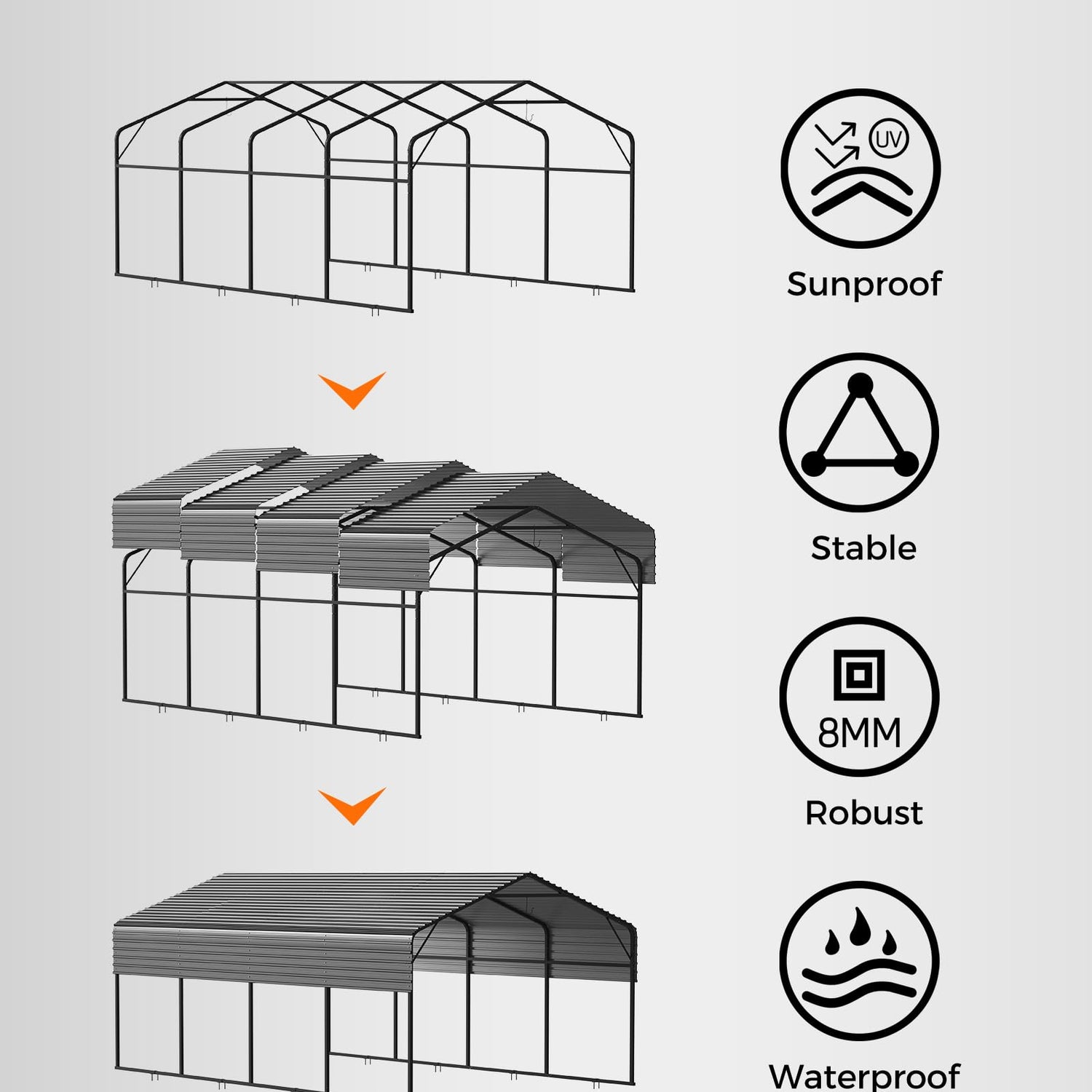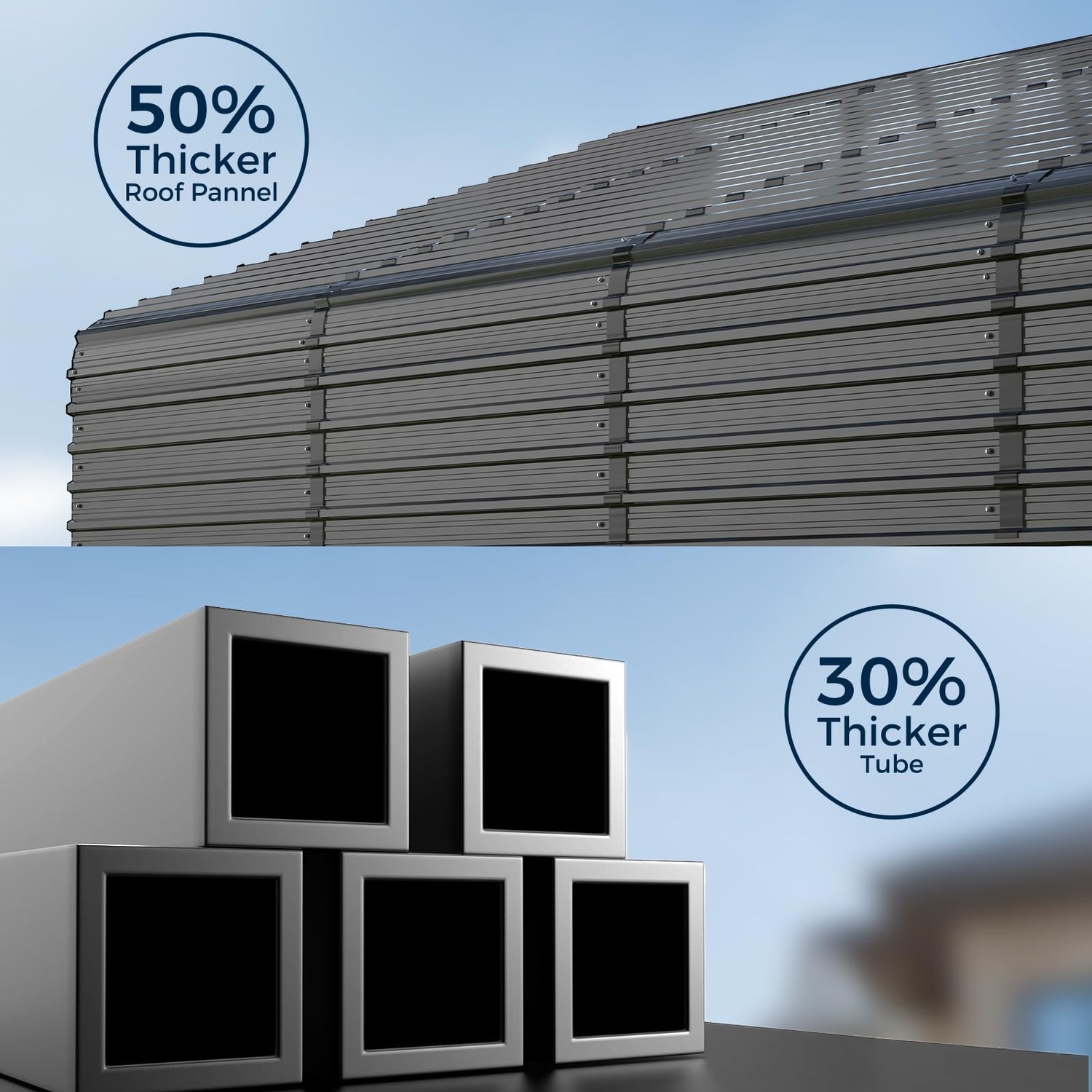 - 【All-Metal Heavy-Duty Construction】Constructed with 19-gauge steel poles + 27-gauge roof panels, all components coated with triple rust-resistant layers (zinc, epoxy, polyester) for 5X longer lifespan vs. tarp carports. Includes 22 reinforcement joints at critical stress points.