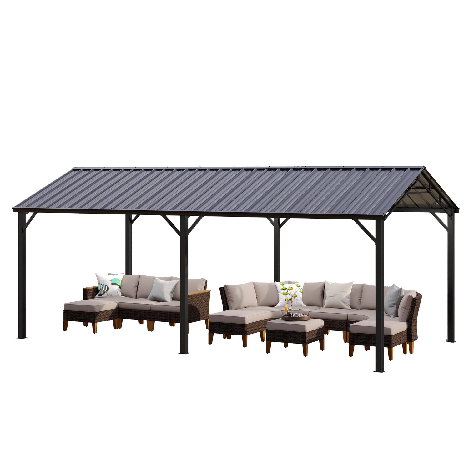 PHI VILLA 10 x 20 ft Carport Metal Carports with Galvanized Steel Roof, Sturdy Heavy Duty Metal Carport for Cars, Boats, and Tractors