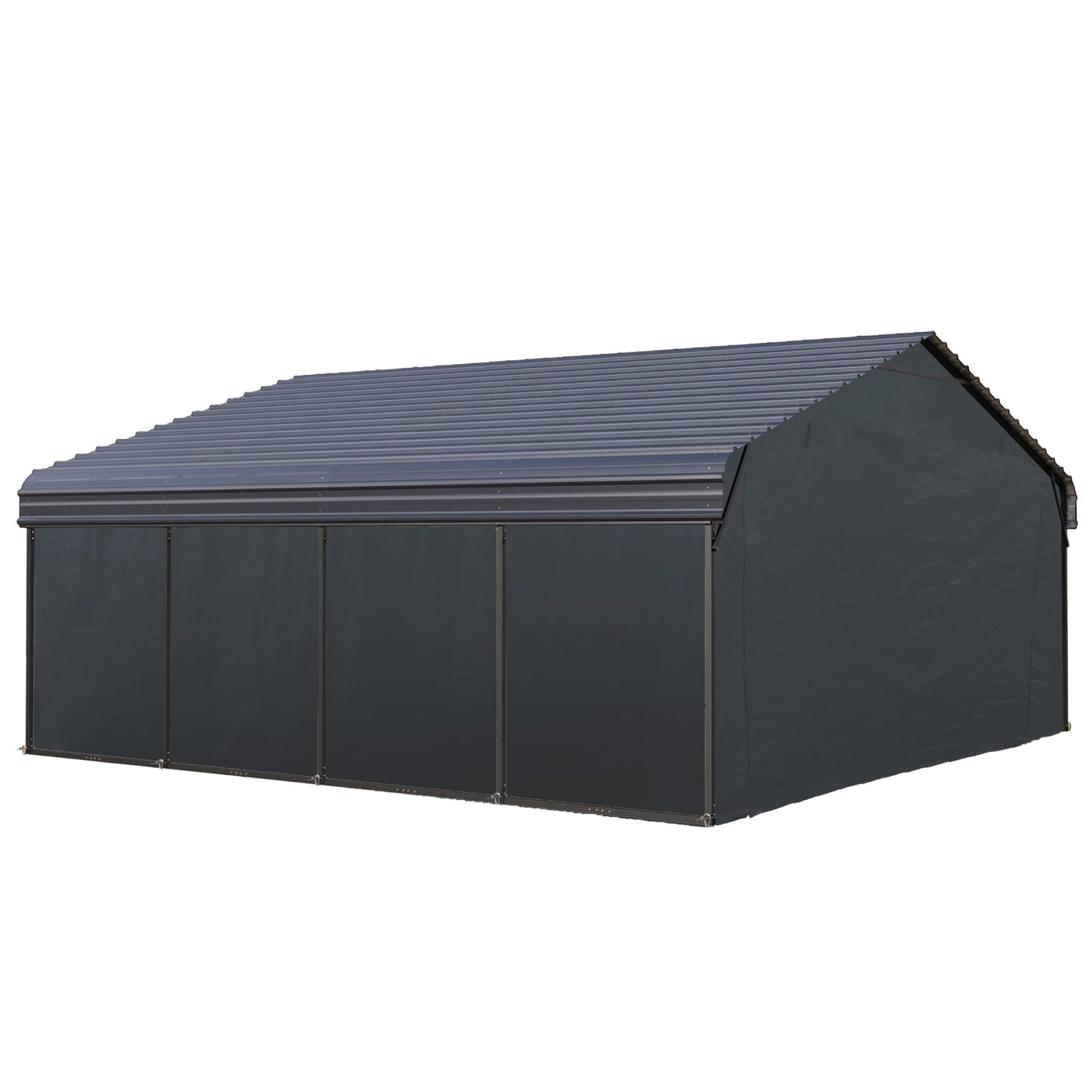 PHI VILLA 20 x 20 ft Carport 2 car Metal Carports with Galvanized Steel Roof with Sidewalls Enclosure Kit, Sturdy Heavy Duty Metal Carport for Cars, Boats, and Tractors