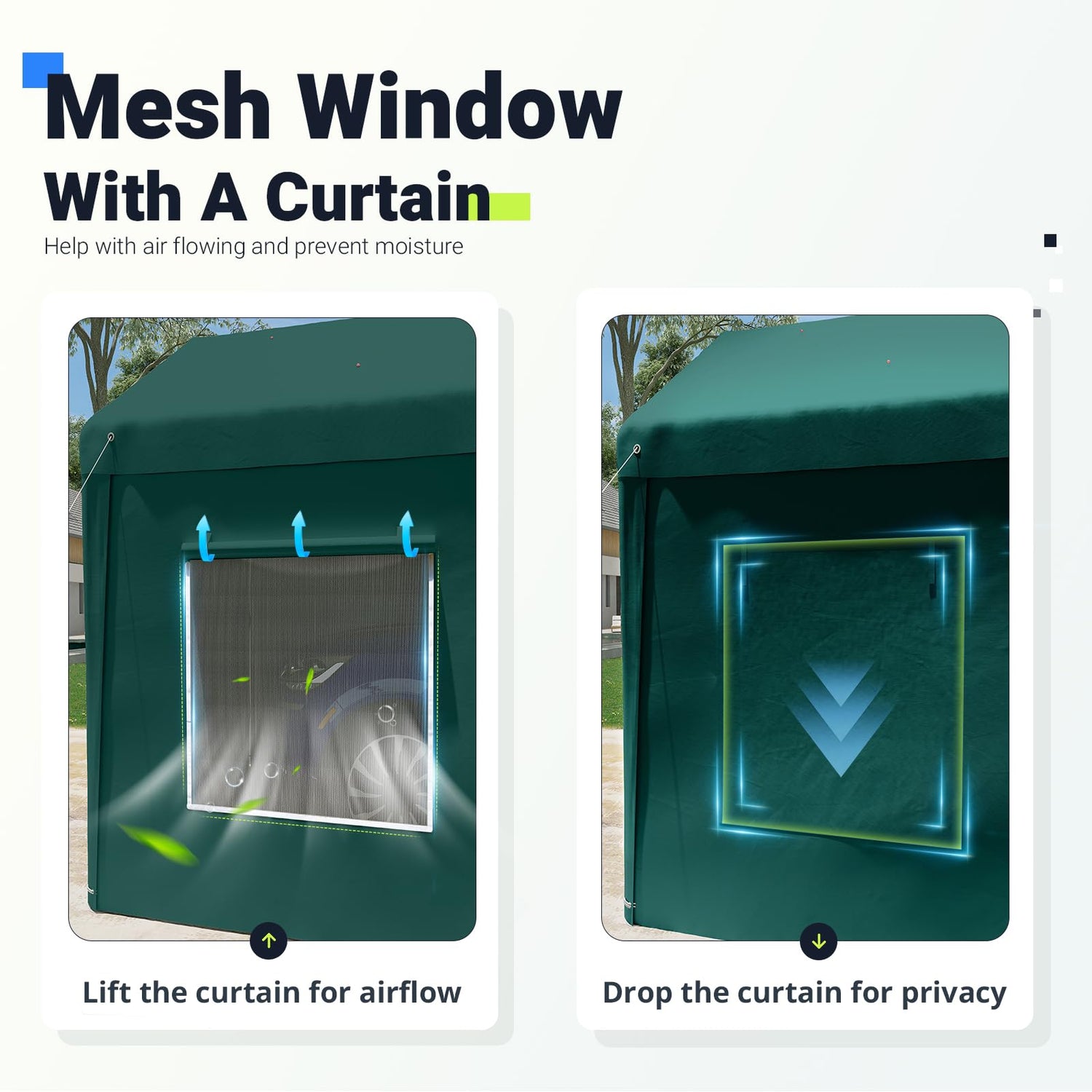 - 【Reinforced Steel Cables】:The car canopy top has extra 4 High strength steel cables to reinforced the entire structure, which makes the whole structure much firm and prevents structural twisting.