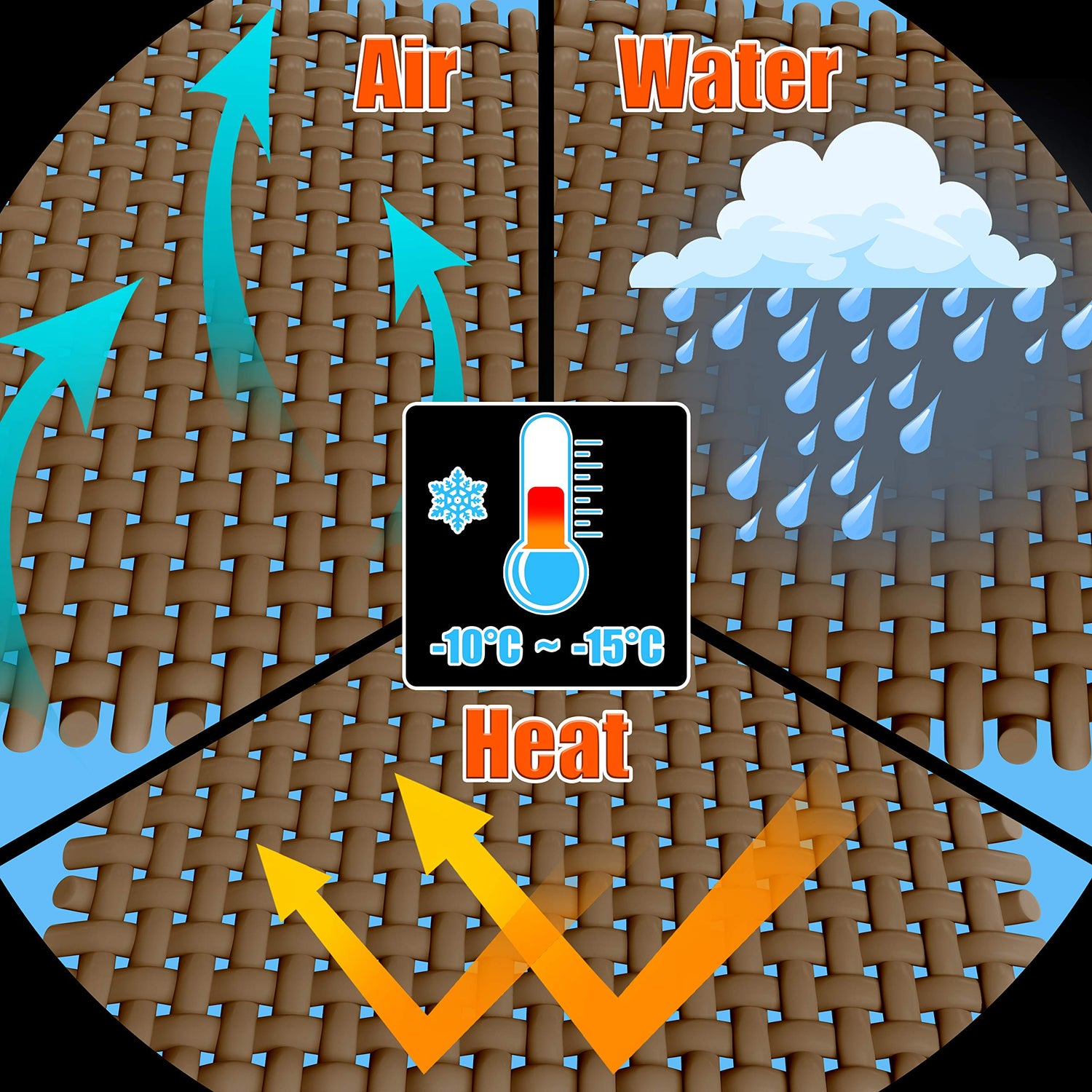 - Functionality: water permeable and breathable, allowing water and air to pass through regardless of the weather; and blocks up to 95% of harmful UV rays and sunlight, significantly lowering temperatures by at least 10–15 degrees