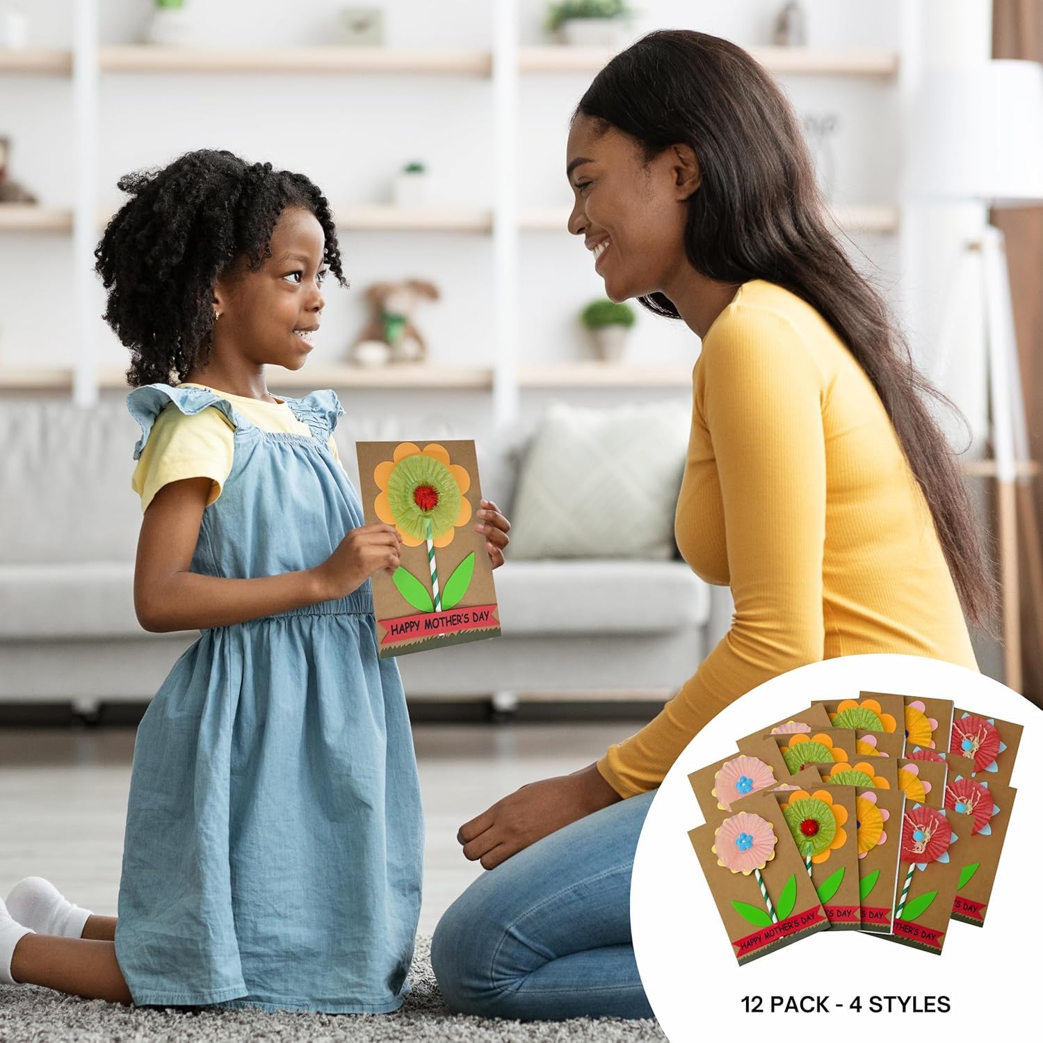4E's Novelty DIY Mothers Day Craft Kit 4 Pack, Flower Card Making Kit Spring Bulk Handmade Happy Mother's Day Greeting Card Gifts, Home Activities