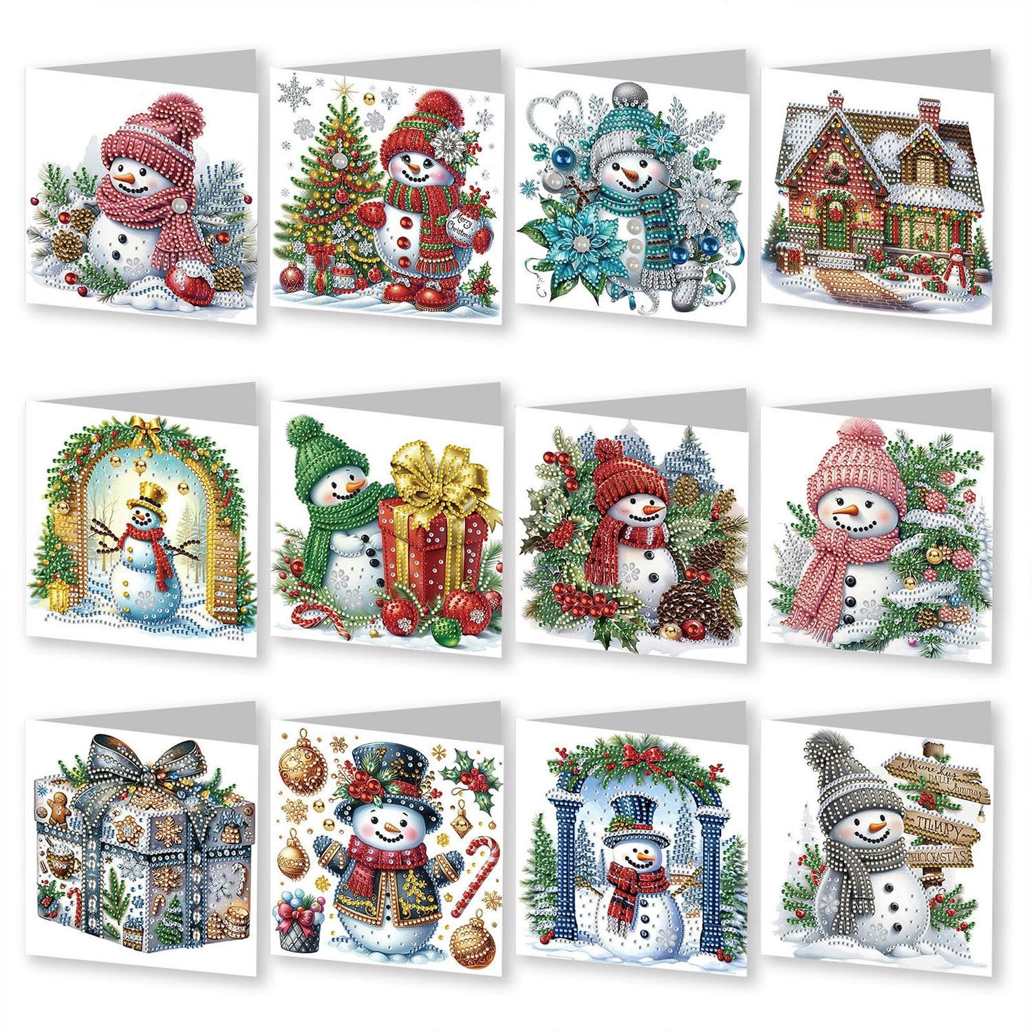 - Christmas Snowman Design: Christmas diamond painting greeting cards are beautiful, using classic Christmas trees and lovely snowmen design. Create beautiful and unique DIY Christmas cards with this 12pcs snowman diamond art cards making kit