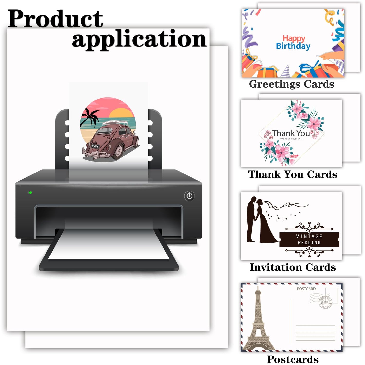 Works Great For: Greeting cards Thank you cards Party invitations Index cards Note cards Flash cards Menus Postcard Scrapbooking Other paper crafts.