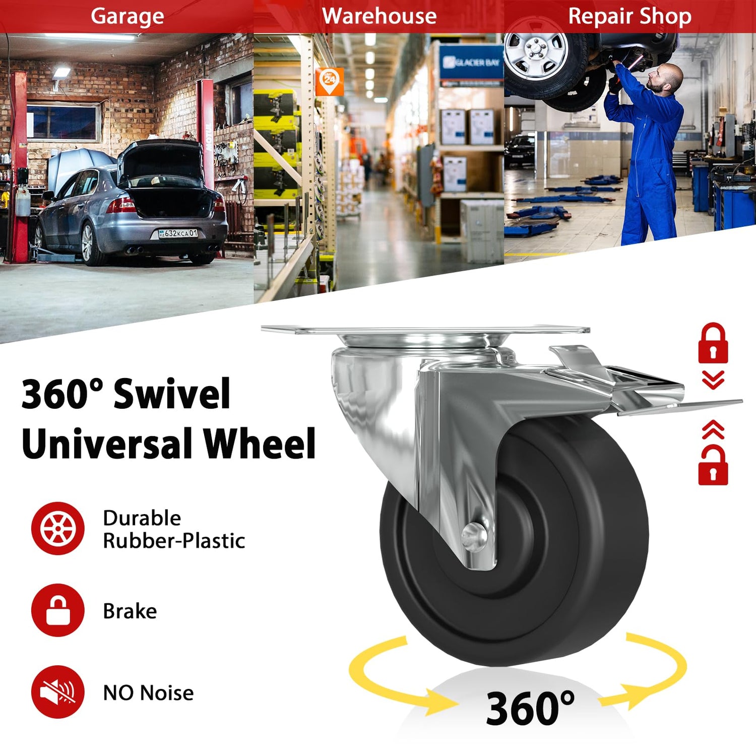- 【Easy to Move】: The tool cart on 4 wheels, 2 fixed casters and 2 universal casters with brakes to take your tools to different workplaces, and side handle to help you move heavy loads easily. Wheels with brakes keep the tool cart stationary and prevent it from moving while you are working.