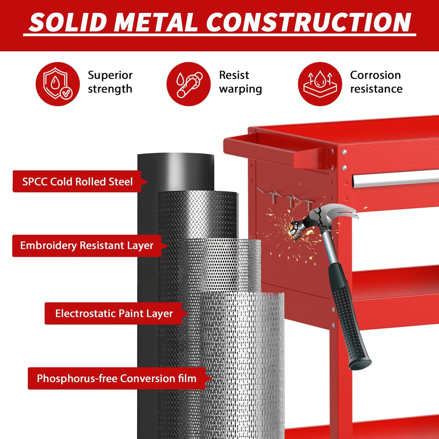 - 【High-quality Material】: Our tool cart is made of heavy duty cold-rolled steel, which is strong and durable. The surface of the tool cart with drawer is covered with powder coating to keep the color bright, which also makes the tool chest is not easy to rust and corrode, and can be used both indoors and outdoors.
