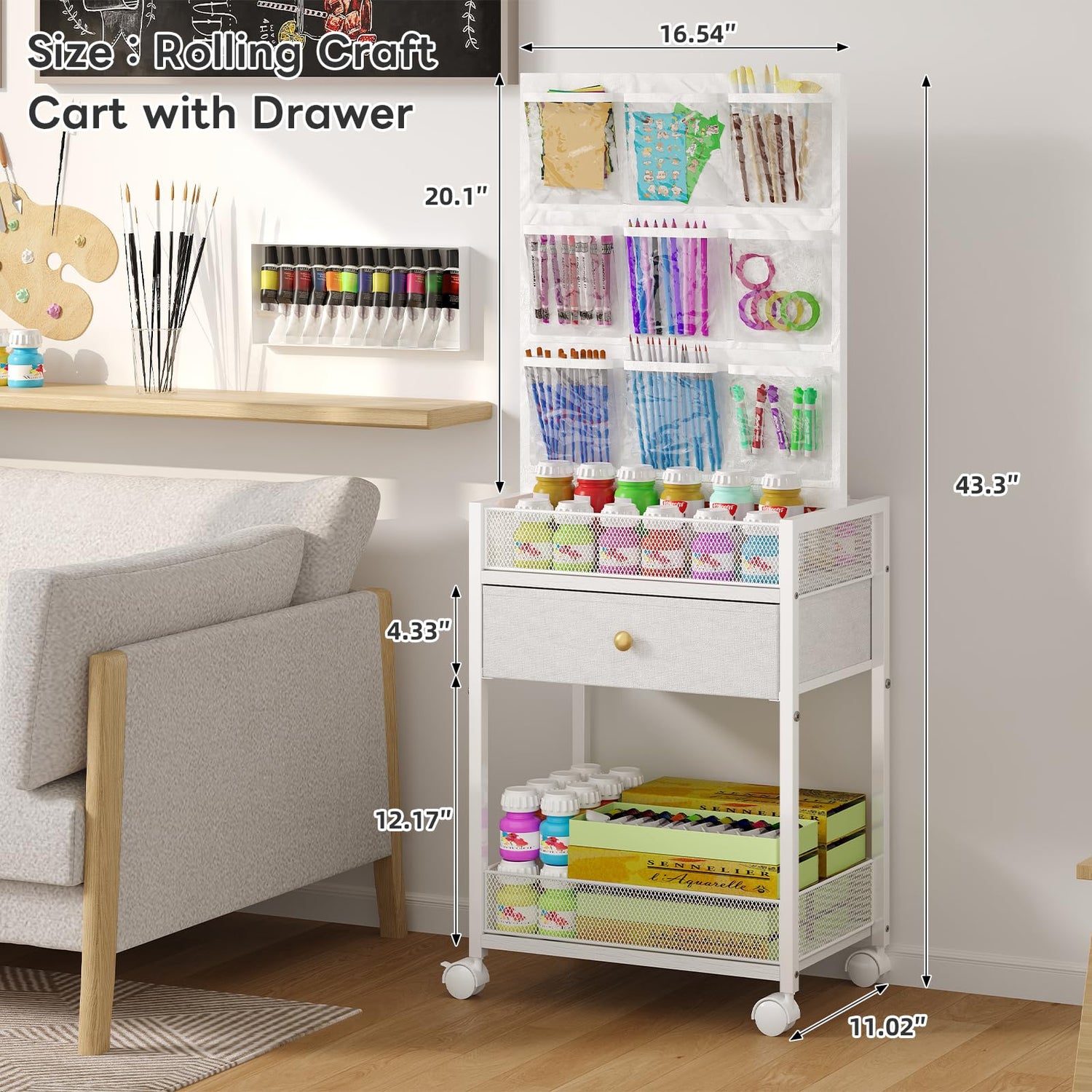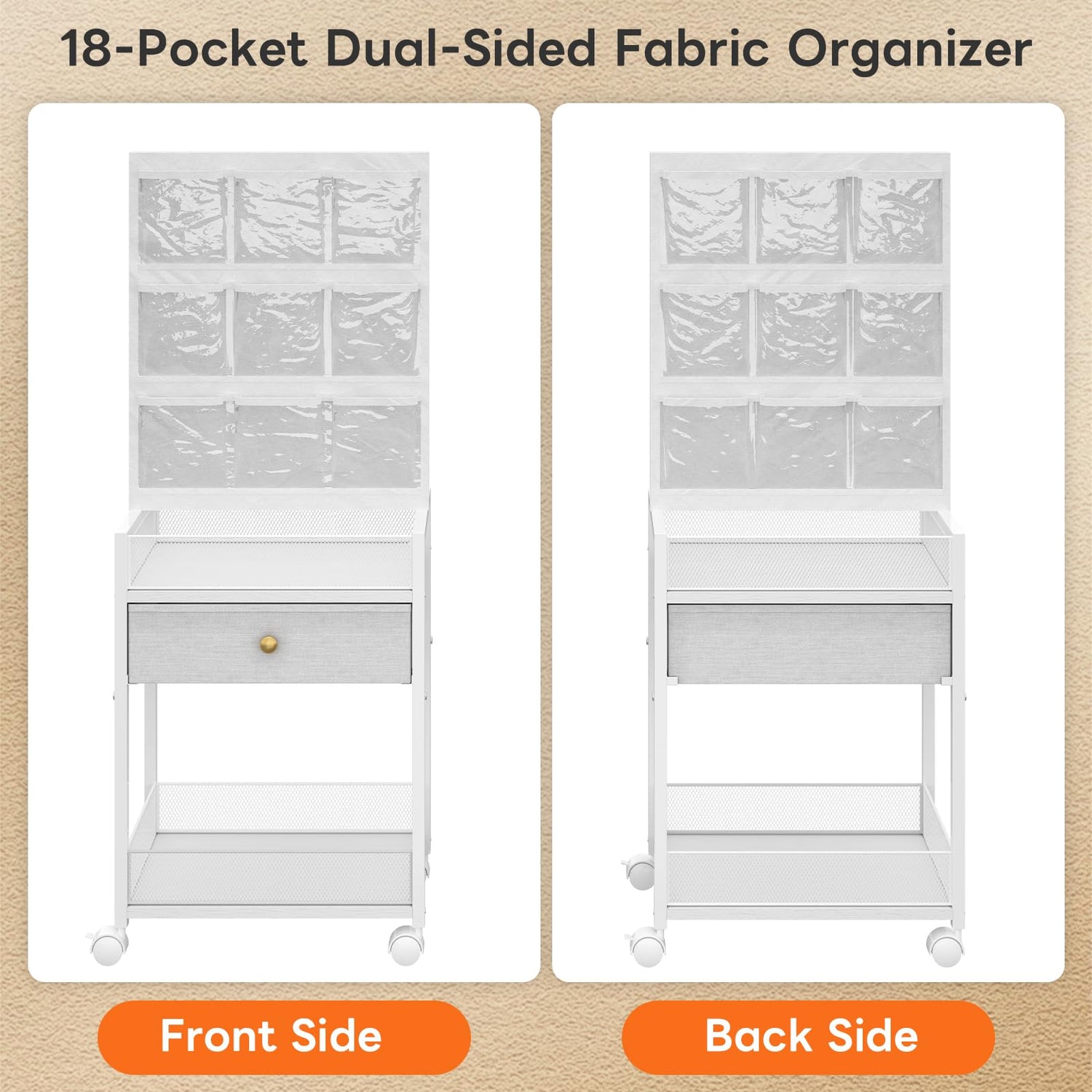 5-Tier Craft Rolling Cart, Craft Organizers and Storage with 18-Pocket, Utility Cart with Drawer & Lockable Wheels, Art & Craft Supply Organizer for Kids' & Adults'Studio, Bedroom (White)