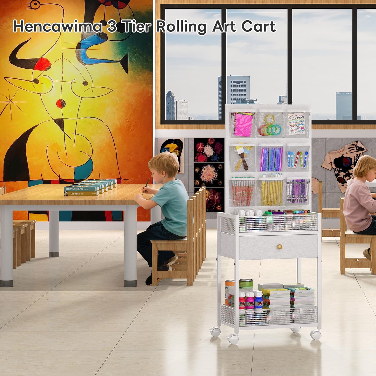• ๐™Ž๐™ก๐™ž๐™™๐™ž๐™ฃ๐™œ ๐™Ž๐™ฉ๐™ค๐™ง๐™–๐™œ๐™š ๐˜ฟ๐™ง๐™–๐™ฌ๐™š๐™ง & ๐™ˆ๐™š๐™จ๐™ ๐™€๐™ฃ๐™˜๐™ก๐™ค๐™จ๐™ช๐™ง๐™š๐™จ: This utility cart includes a convenient sliding drawer for smaller items and mesh enclosures to prevent spills. Whether used as an art supply organizer, craft cart with drawers, or storage cart with wheels, it securely stores your supplies while keeping everything organized and easy to access.