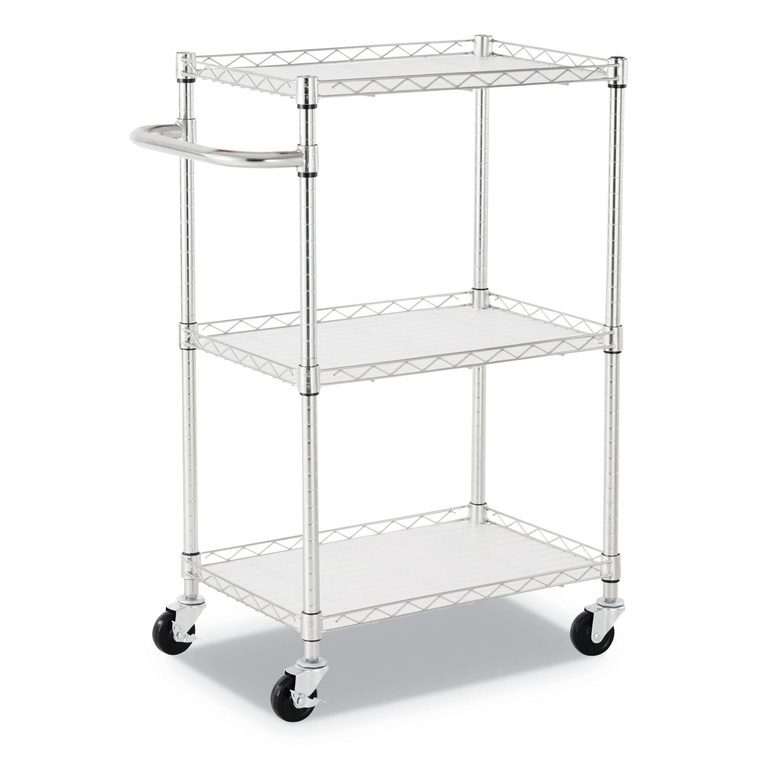 Details: Alera ALESW322416SR 24 in. x 16 in. x 39 in. 450 lbs. Capacity 3-Shelf Wire Cart with Liners - Silver
