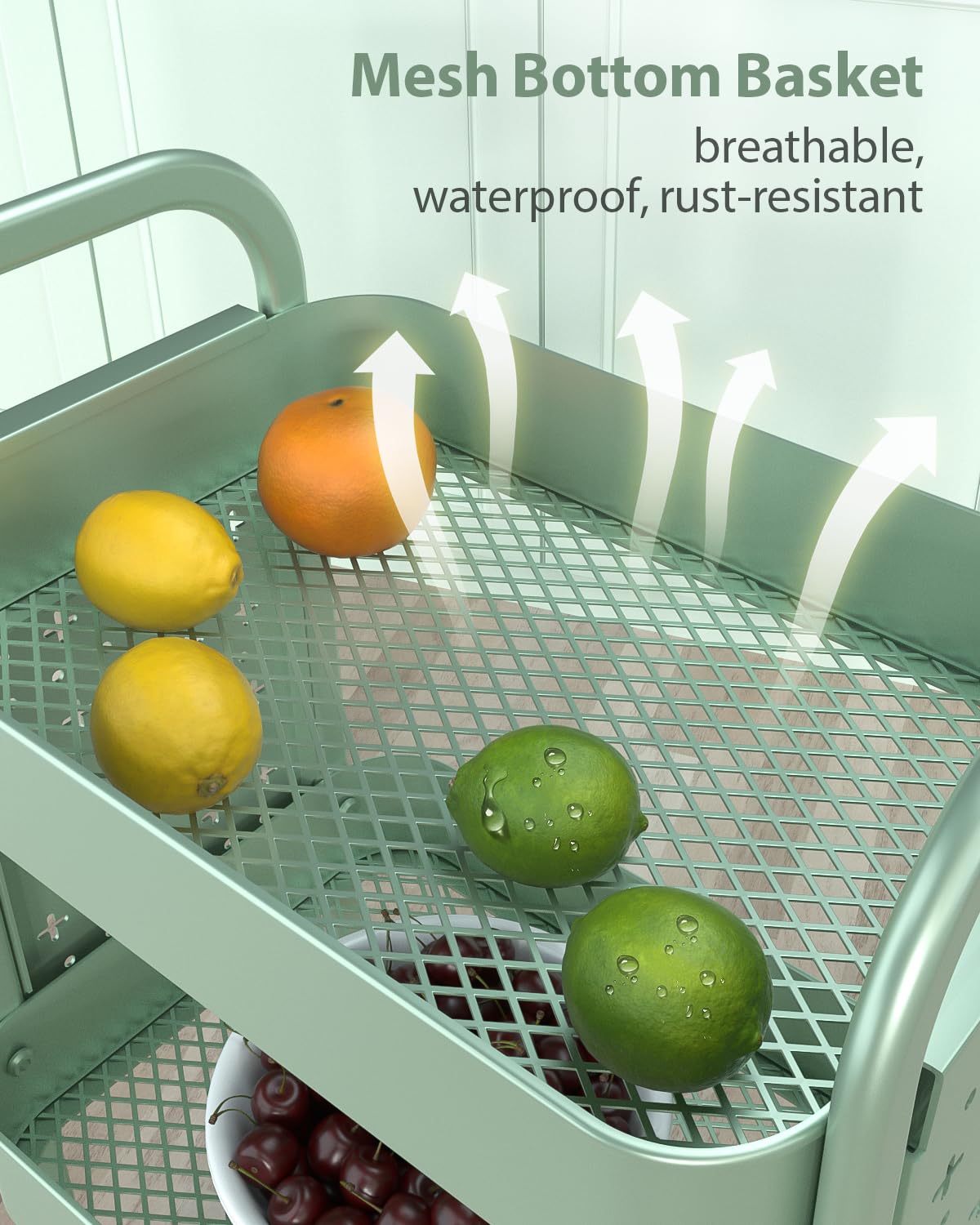 ALVOROG 3 Tier Rolling Cart with DIY Pegboards Metal Utility Cart with Wheels Handles Baskets Hooks, Storage Cart for Office Kitchen Bathroom(Green)
