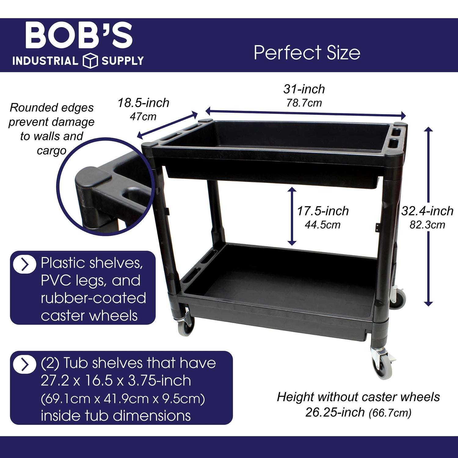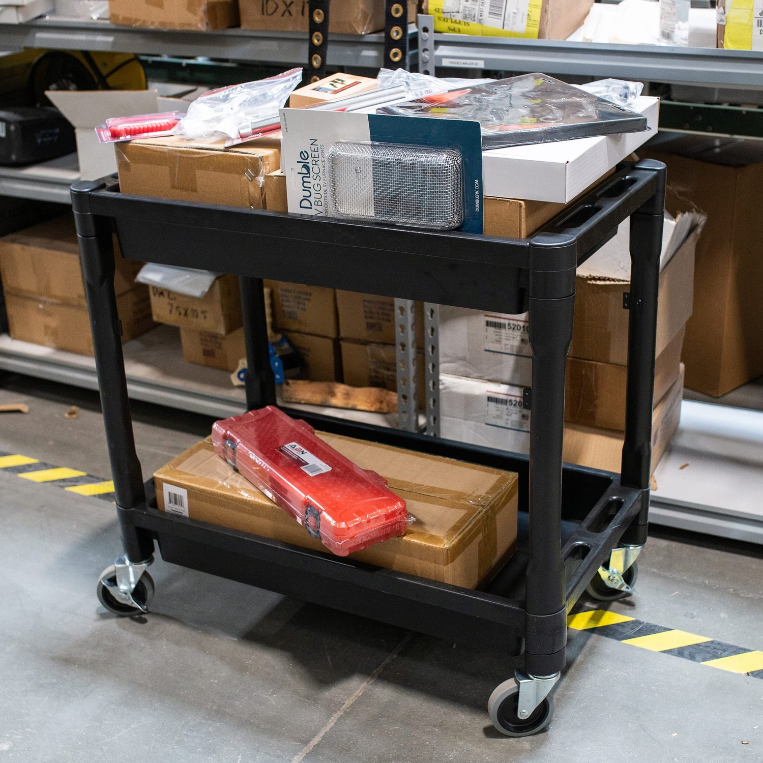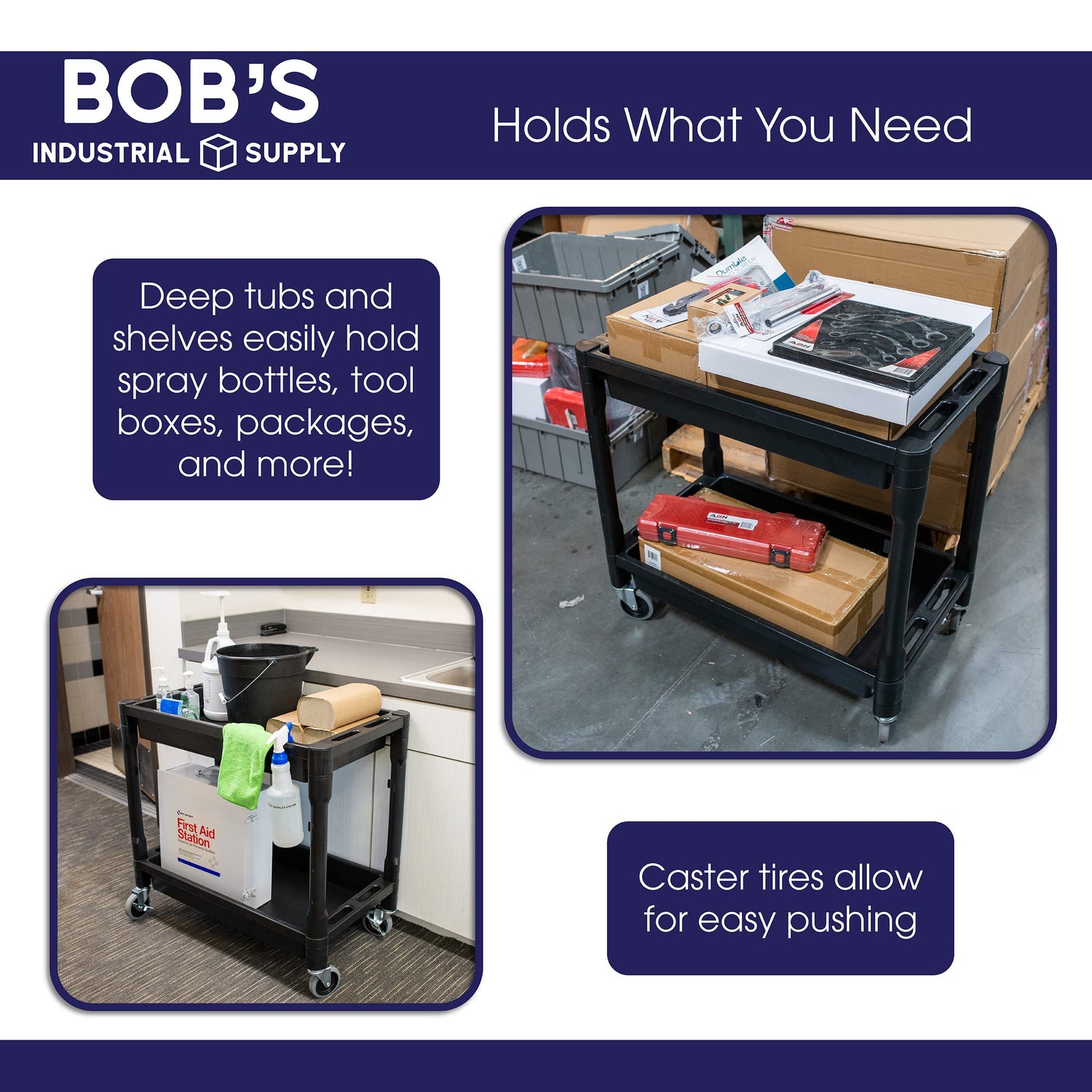 BISupply Plastic Utility Cart on Wheels 1 Pack - 2 Shelf Rolling Commercial Work Cart for Garage, Restaurant, or Classroom