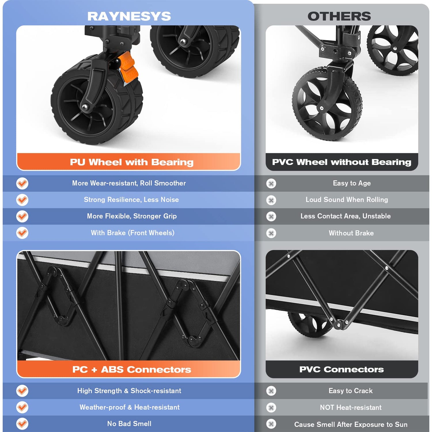 - ๐๐๐๐ฏ๐ฒ ๐๐ฎ๐ญ๐ฒ ๐ ๐จ๐ฅ๐๐ข๐ง๐ ๐๐๐ ๐จ๐ง: With the double-chassis stable design, high-strength steel and alloy-grade plastic parts, the capacity Raynesys heavy duty collapsible wagon can be up to 200 kg/440 Lbs. The hollow-plate bottom plate won't be broken after being bent. Tip: Do not soak in seawater continuously for more than 24 hours, and please dry it in time after soaking in seawater or water.