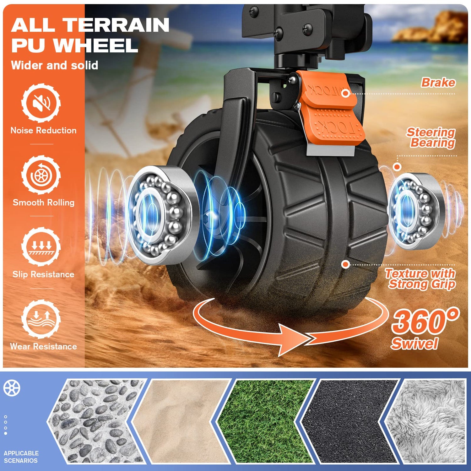 - ๐๐ข๐๐๐ซ ๐๐ง๐ ๐๐ข๐ ๐ ๐๐ซ ๐๐ก๐๐๐ฅ: With Double Bearing Design. Foldable wagon with 7" diameter big all-terrain wheels that are three times wider than other wagon's wheels, which means you can take it to any where,such as sand, mud, grass, bumps, and curbs. The front wheels with brakes can rotate 360ยฐ, which is safe and usable.