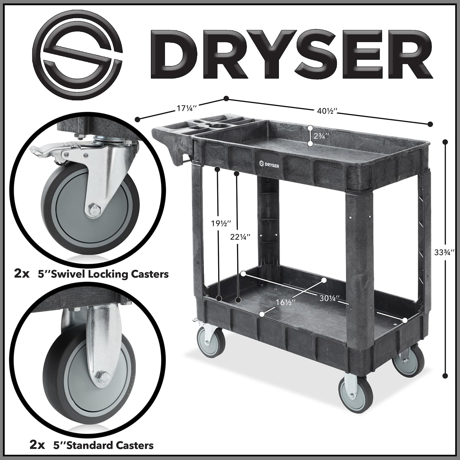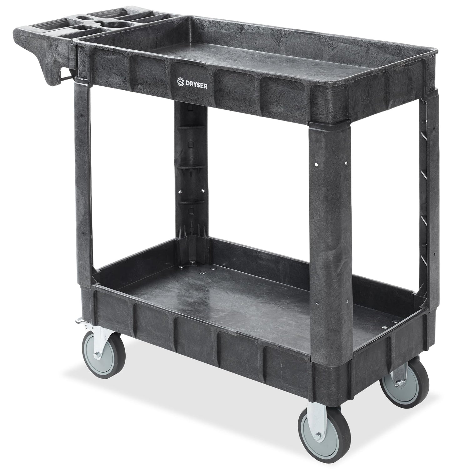Dryser Utility Service Cart with Wheels, 40" x 17" Heavy Duty 550 lb. Capacity with Shelves - 2 Tier Rolling Cart with Two 5" Swivel Casters for Warehouse, Garage, Cleaning