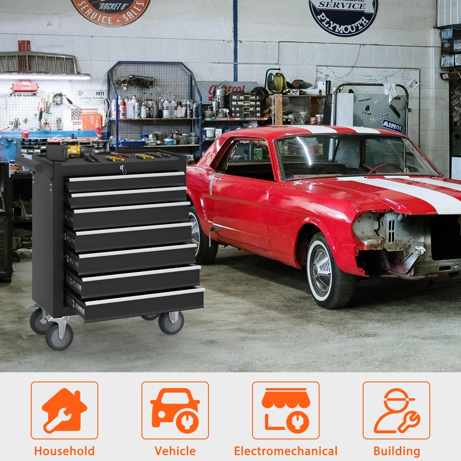- 👍【Spacious Storage Capacity】This rolling tool box offers seven drawers, providing ample storage for all your tools. The multiple drawers help you efficiently categorize tools, ensuring everything has a place, making your workspace more organized.