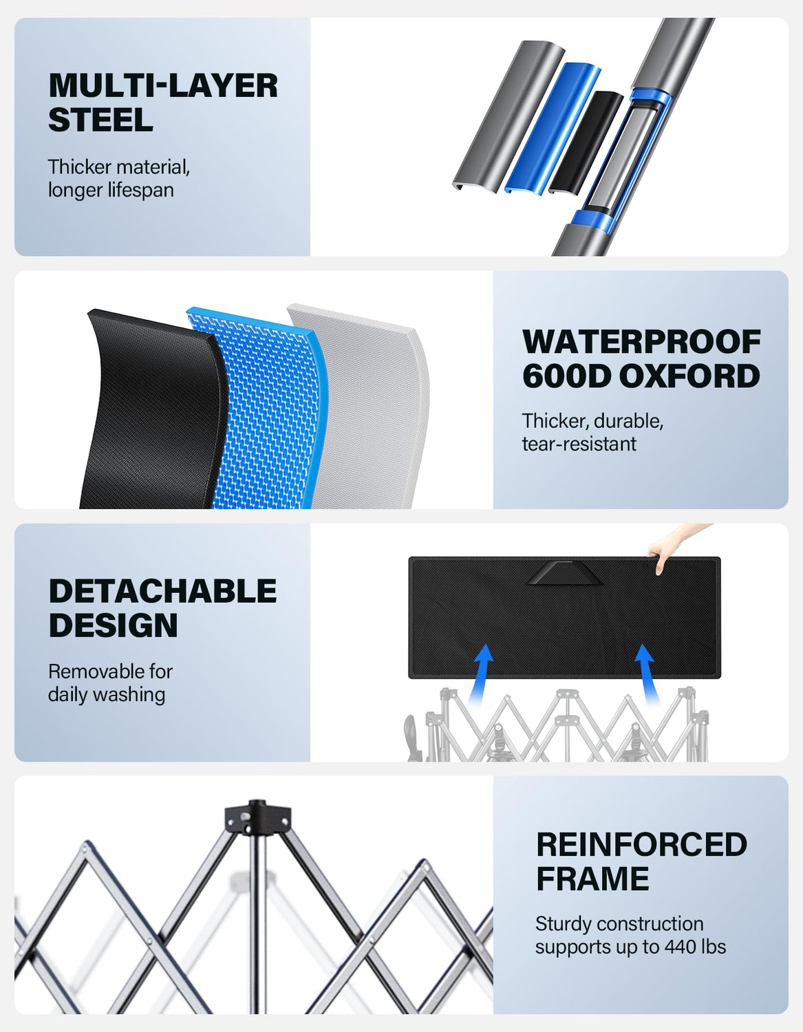 - Washable 600D Oxford Fabric Wagon: Made from waterproof, tear-resistant 600D Oxford fabric with reinforced double stitching for durability; The fabric is easily removable for washing, ensuring your wagon stays fresh and ready for your next adventure