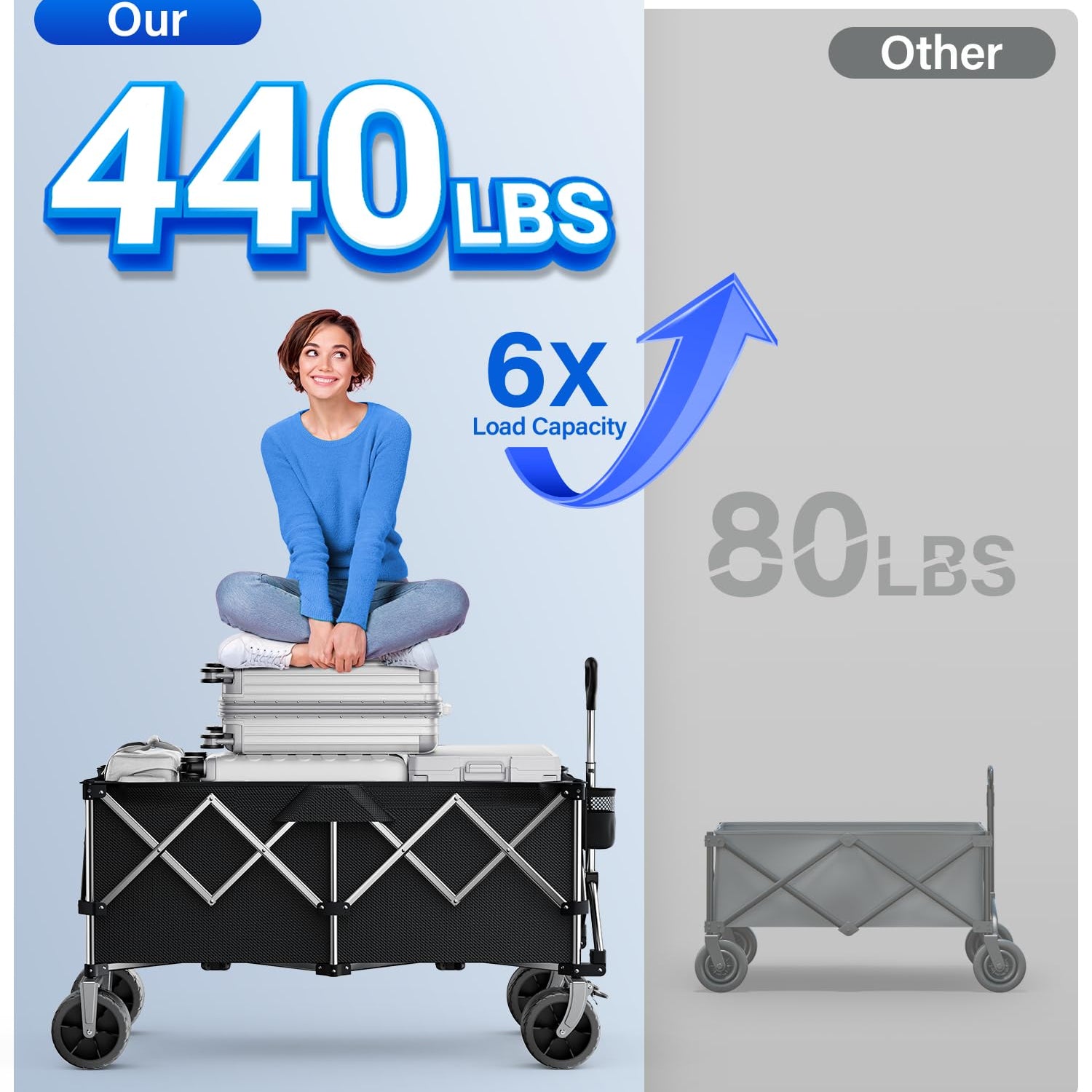everyfun Pro Collapsible Wagon, 440lbs Wagons Carts Foldable with Big Wheels, Heavy Duty Utility Folding Wagon for Garden Camping Grocery Beach-Black